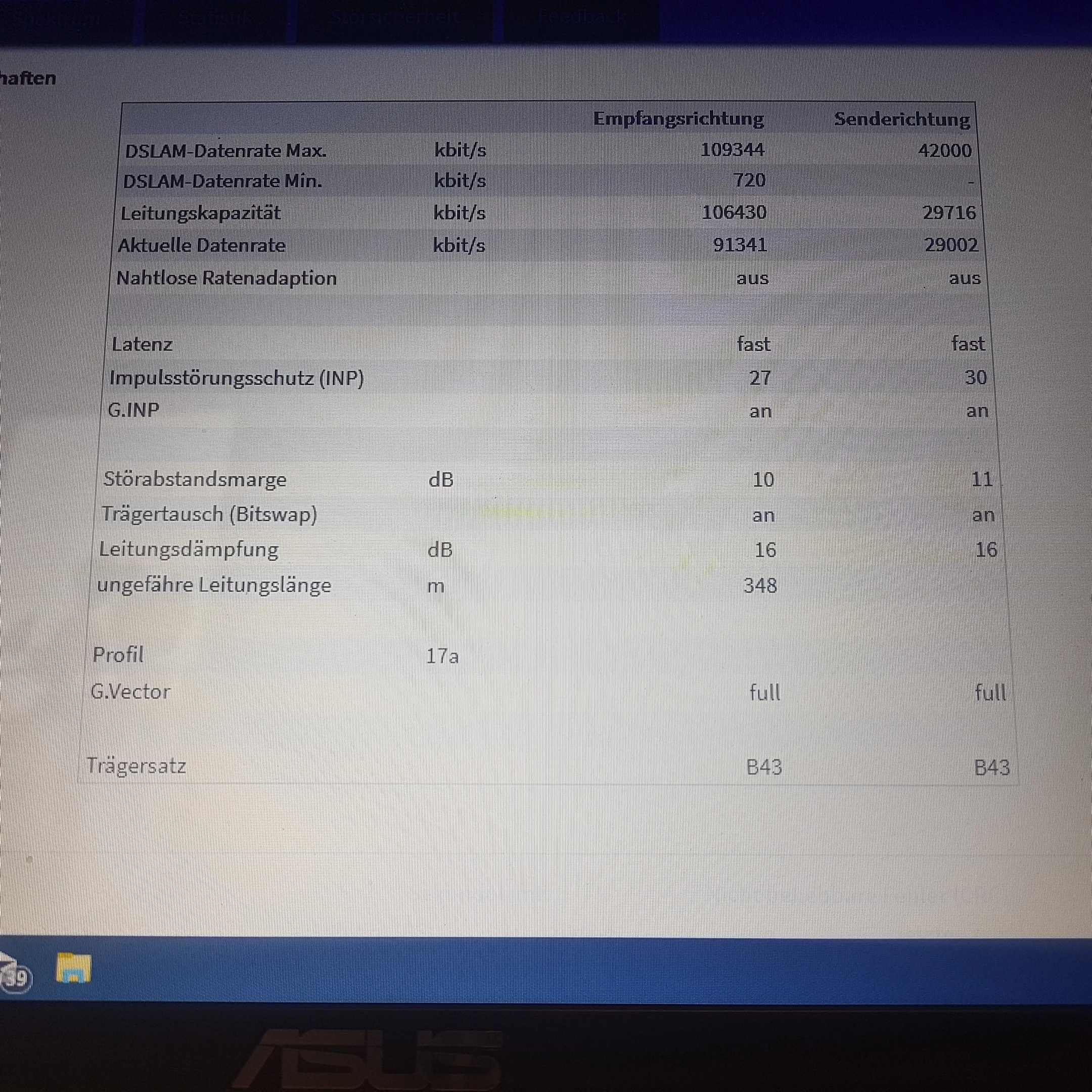 Dann schau doch mal in die Verbindungsdaten in der Fritzbox! Davon einige Screenshots von den Anzeigen unter DSL-Informationen und wir sehen mehr als irgendwelche Werte. Das mit WLAN war ja nur ein Verdacht, da das häufig passiert.