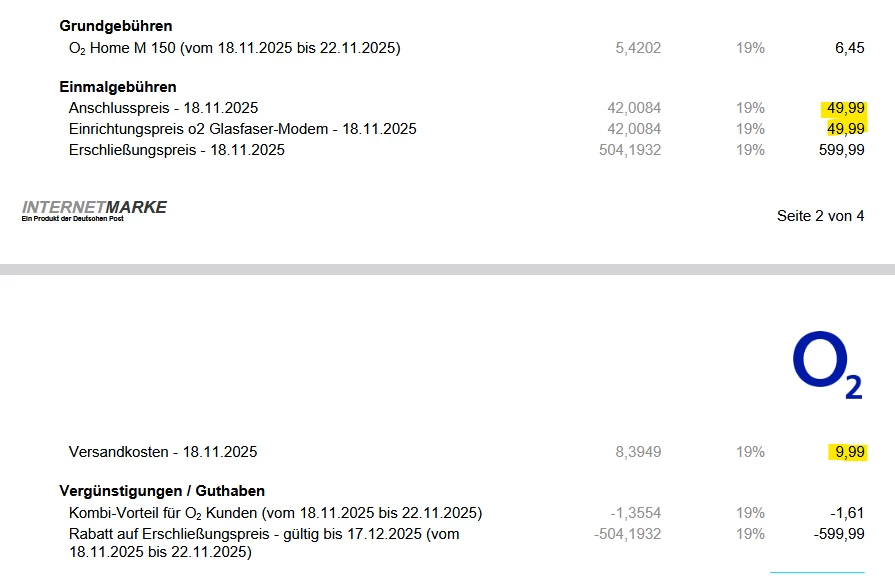 Genauso wie die Versandkosten, hatte ja keinen Router von o2 bestellt.