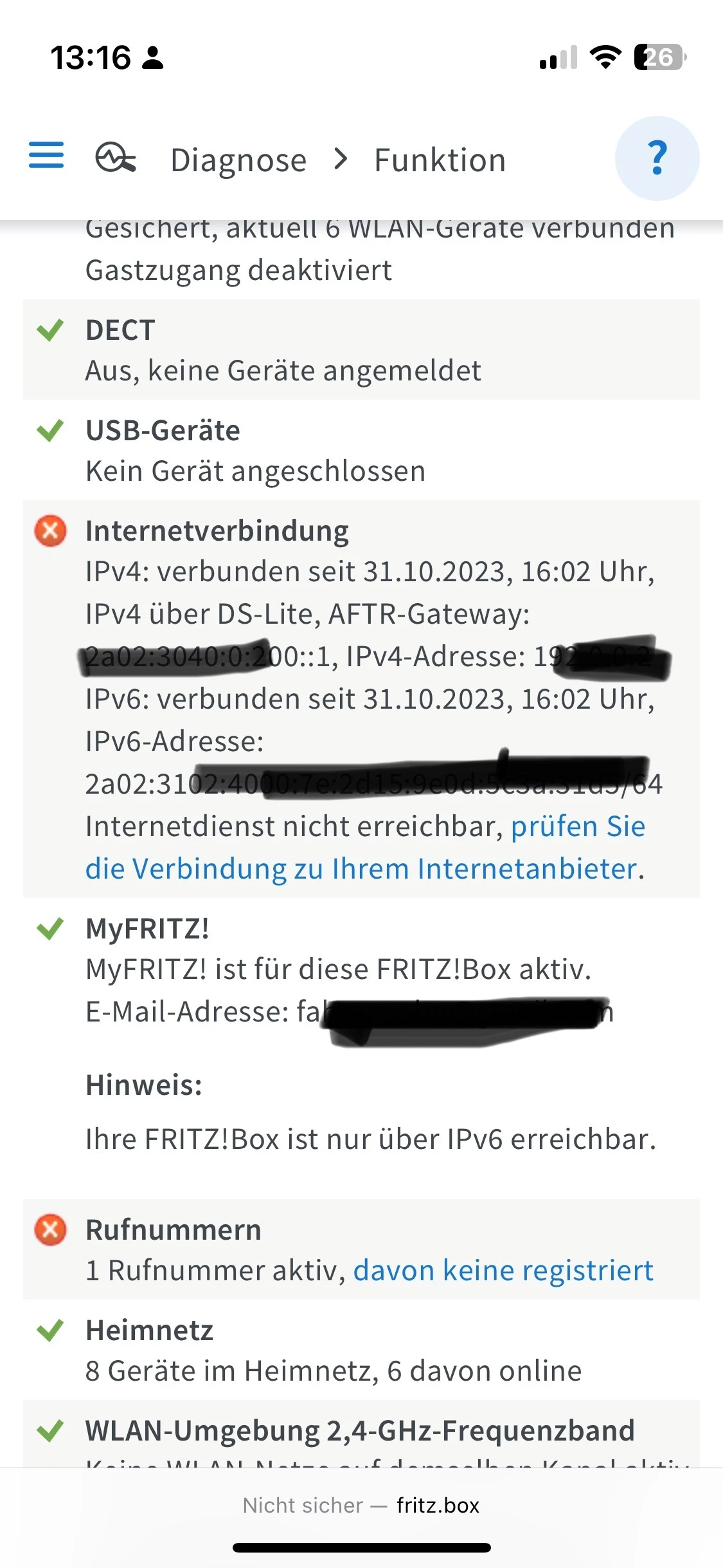 leider wird es immer schlimmer. Verbindung bricht ab, Telefonie geht nicht… es hängt. Die o2-App sagt alles ist gut, praktisch und in der FRITZ!Box häufen sich die DNS Fehler, nicht gelungene Updates, Gehenstelle antwortet nicht, Kanalwechsel vorberechtigter Nutzer? Gerade eben ist die Leitung wieder abgestürzt.