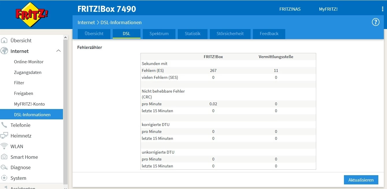 Falls du eine Fritzbox verwendest, ist ein Screenshot der DSL-Informationen wie Übersicht, DSL, Spektrum und Statistik sowie Ereignisse hier immer gerne gesehen.
