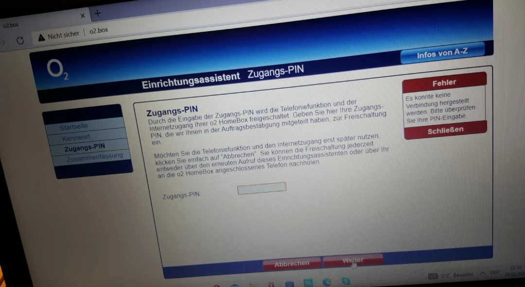 Aber er tut es ja nicht... Es wird nach dem Zugangs-Pin gefragt, aber der stimmt nicht... Der Pin, den die Hotline nannte, ist genau die gleiche, die im Kundenkonto hinterlegt worden ist.