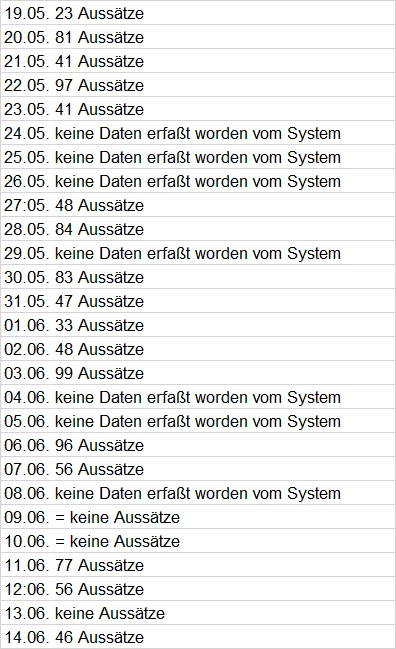 Am 20. Mai habe ich die Störung gemeldet. Es wurde ein Termin mit einem Techniker von Telekom vereinbart, der an diesem Tag seitens O2 mir gegenüber wieder abgesagt wurde, da die Telekom aus Ferne Messungen vorgenommen hat und keine Störfaktoren feststellen konnte.