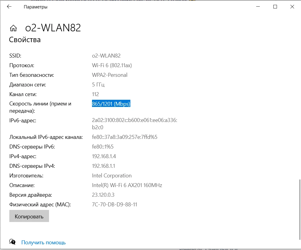 Leitungsgeschwindigkeit (Empfang/Senden) 865/1201 (Mbps)