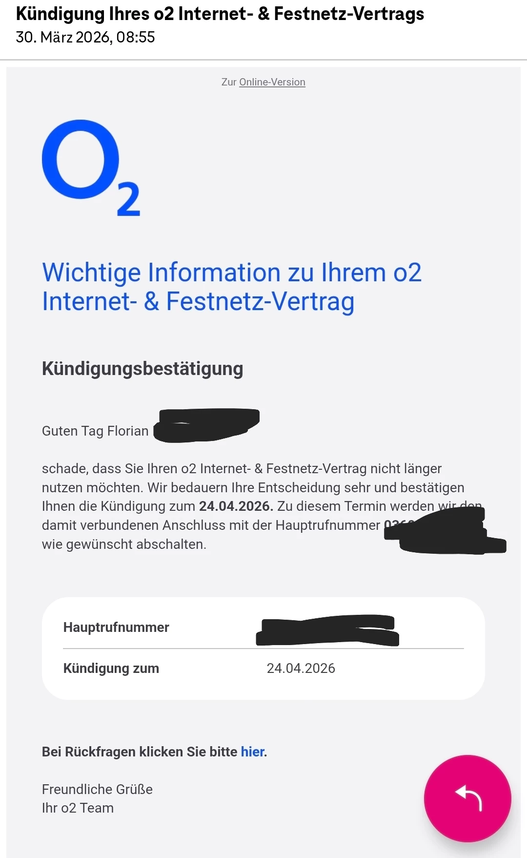 Hallo ​@Bumer hier steht es laut o2 ist die Kündigung wieder raus jetzt hat er sie zum 15.5.2026
