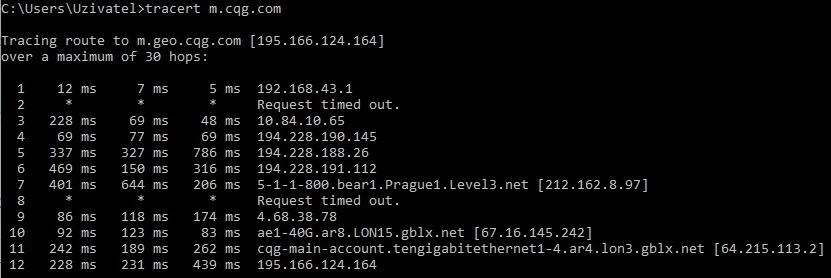 Hinter dem usernamen tracert api.cqg.com eingeben und mit Enter bestätigten.