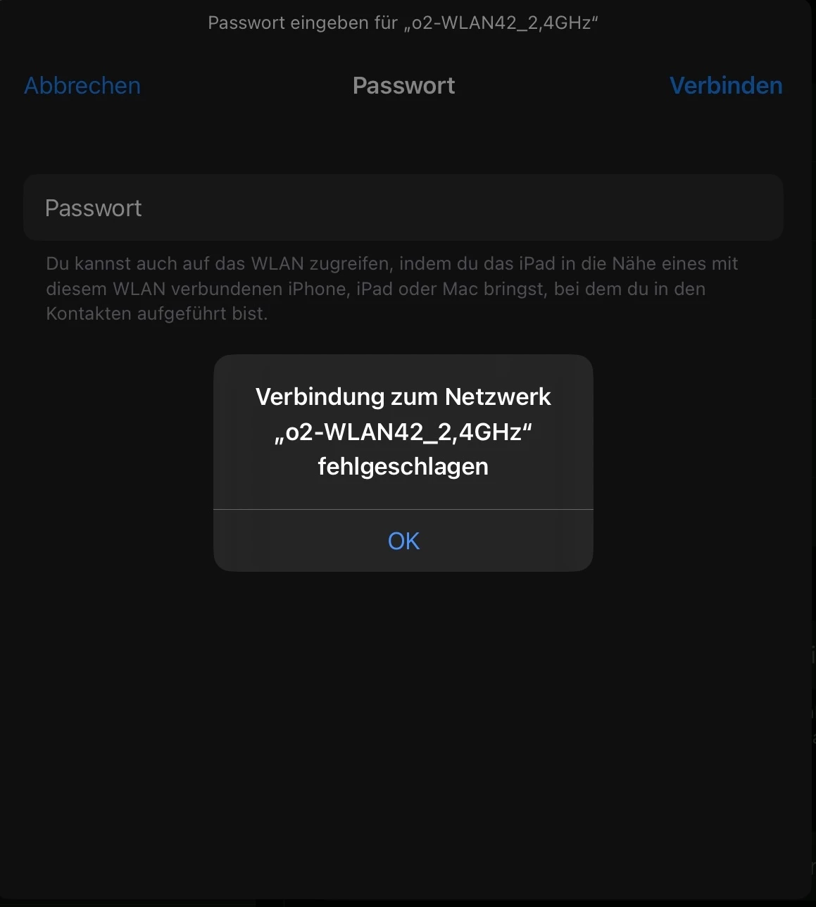 Passwort ist richtig? 2,4GHz Netzwerk ist auch an? Wird es angezeigt? Gibt es eine Fehlermeldung?