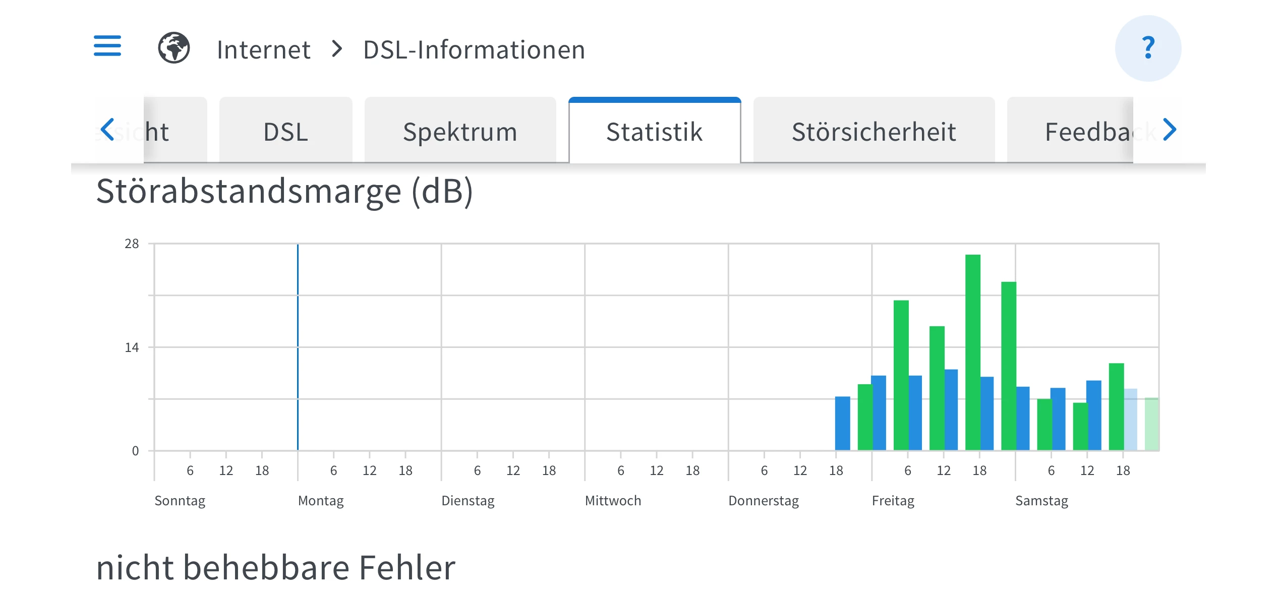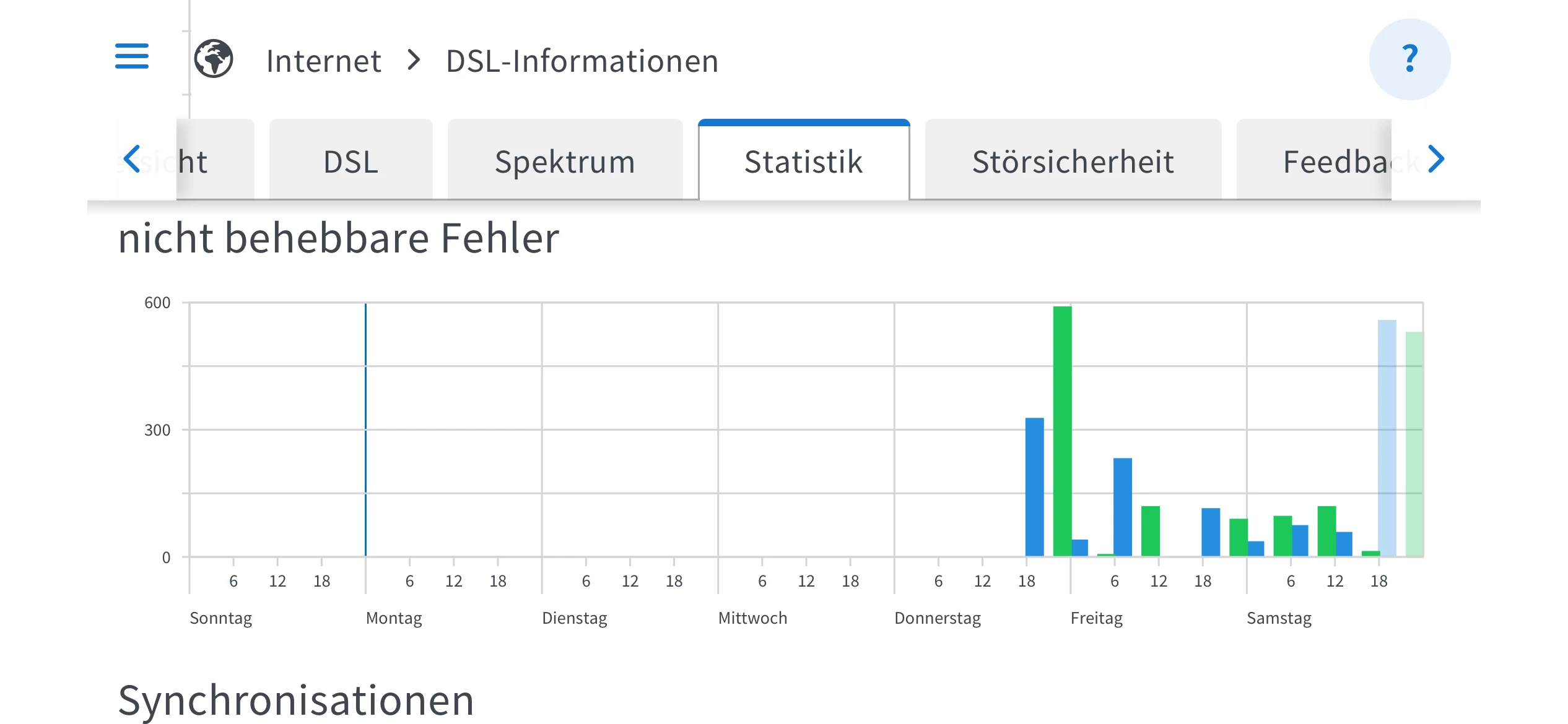 • Leitungsabbruch: Die DSL-Leuchte blinkt ständig (besonders gestern und heute). Praktisch jeden dritten Tag gibt es Totalausfälle, die ein paar Stunden dauern.
