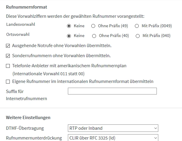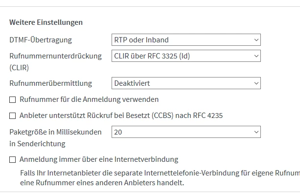 • Wie sieht es mit den übrigen VoIP-Einstellungen aus?