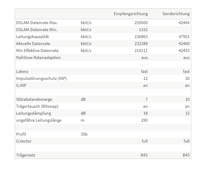 Moin. Danke für die schnelle Antwort! Mein upload war aber sonst immer mit 47 sync 😁 deshalb dann auch die 43-44 im speedtest! Also beides wurde zu 100% runtergeschraubt.