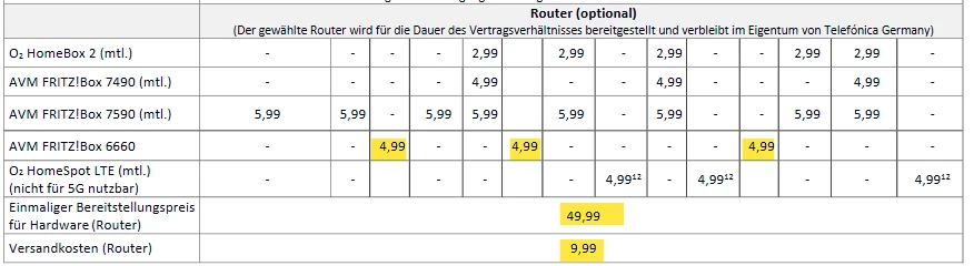 Die Preisliste ist mir durchaus bekannt, ich finde es nur absolut unverschämt, die Router-Aktivierung jetzt noch einmal zusätzlich zu den 70 Euro (eigentliche Aktivierungsgebühr, die man eigentlich für beides zahlt) zu zahlen, wenn ich dann doch nicht das eigene Gerät nutzen kann und mich zusätzlich dazu entschließe (aufgrund des Versagens der Technik mit dem eigenen Endgerät) dann doch das Leihgerät von O2 zu wählen.