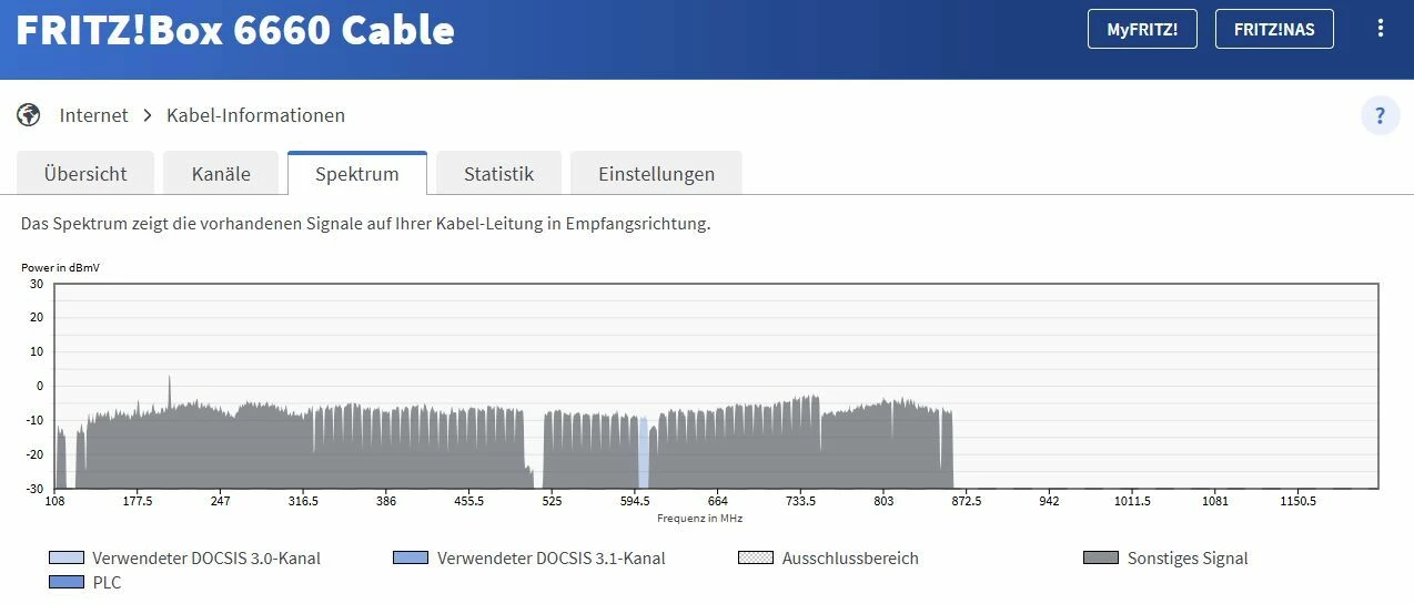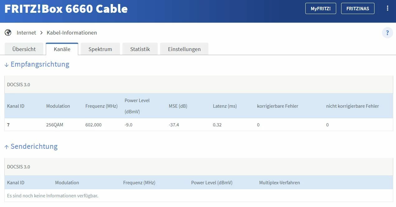 Unterpfad Kanäle (Empfangsrichtung DOCSIS 3.0) gibt es immer wieder verschiedene Angaben. Darum hier einmal Beispielwerte: