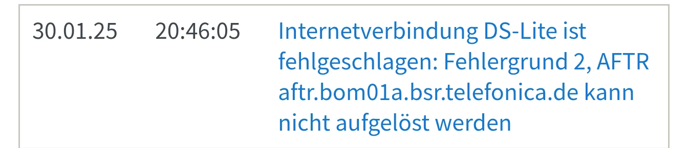 Ich gehöre anscheinend zu den wenigen Kunden, die dieses besondere Problem haben, bei dem die Internetverbindung bis IPv6 besteht, aber aufgrund einer nicht auflösbaren aftr Adresse keine IPv4 Verbindung besteht.