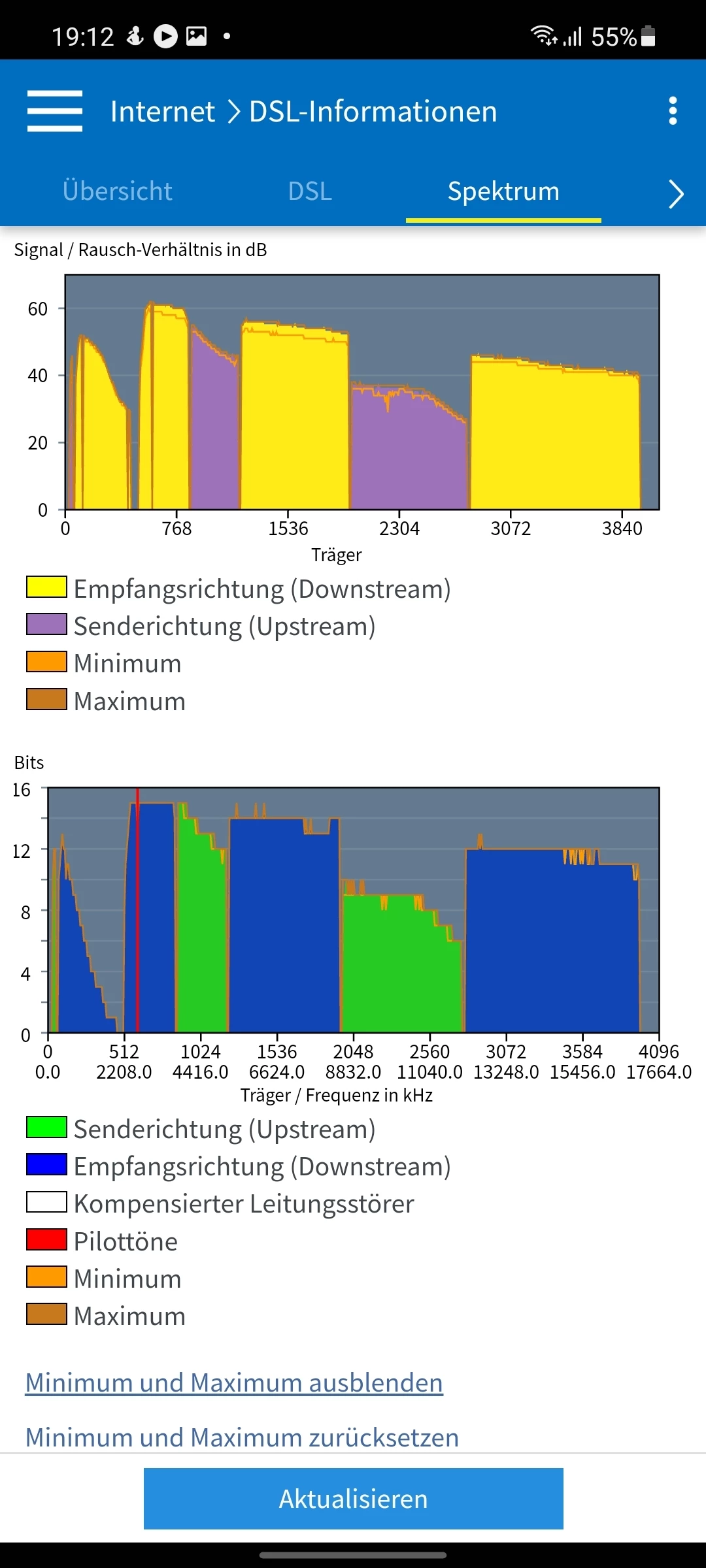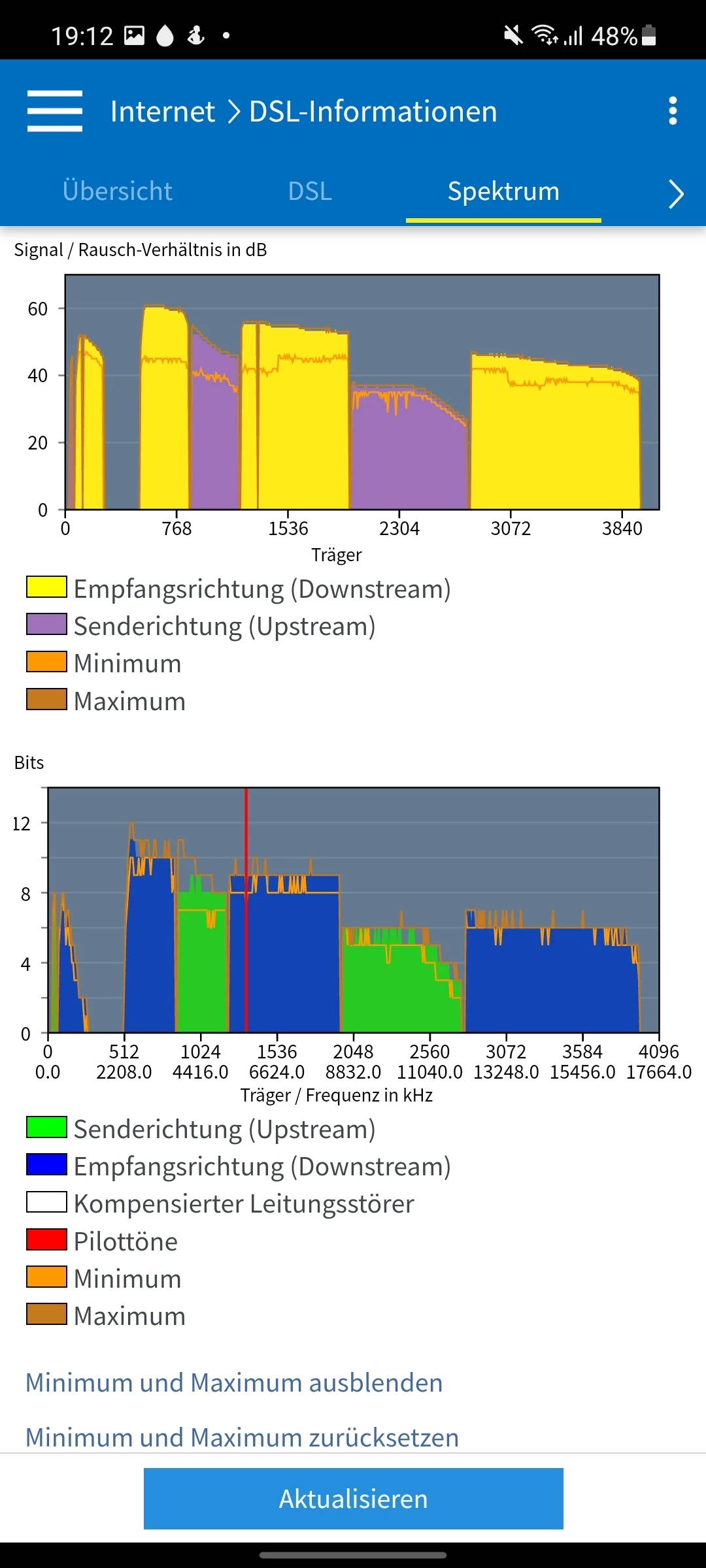 Poste bitte erneut einen Screenshot der Tabelle “DSL” und des jetzigen Spektrums mit Min./Max-Anzeige.