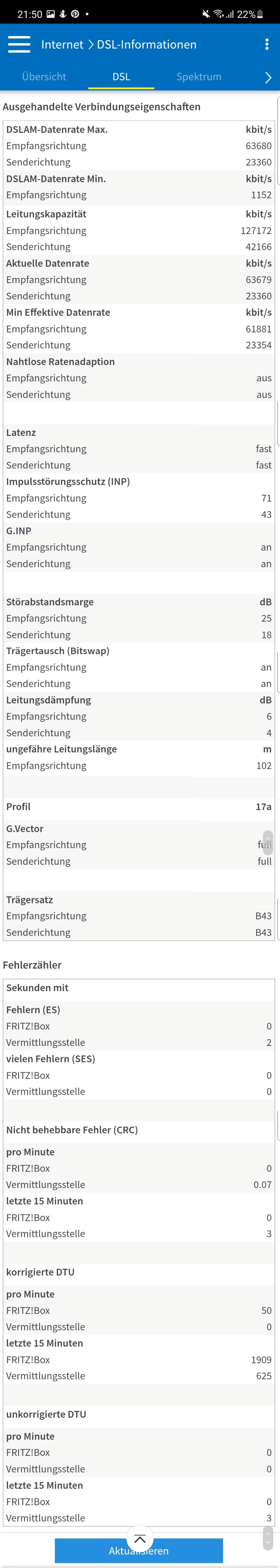 Ah mist das klang so super, als ich gerade deine Nachricht gelesen hatte. Hab aber noch mal bei der Fritzbox nach geguckt. Er hat schon wieder angefangen Fehler zu zählen.