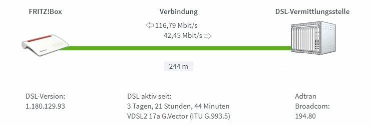 Aktuelle Datenrate:    116797 kbit/s (Empfangsrichtung)    42458 kbit/s (Senderichtung)
