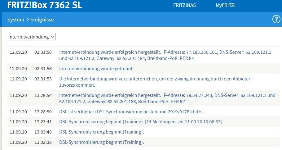 Hallo, die FritzBox ist im August 2019 auf OS 7.12 aktualisiert worden. Der Anschluß ist von Telefonica im November 2018 aktiviert worden und lief seitdem meist mit 57Mbit down und ca 37 Mbit up. Der Speedzusammenbruch ist erst seit ca. Anfang September 2020, war auch im Urlaub. Interessanterweise lief die 3-monatige Kündigungsfrist Ende August ab. EIn Schelm der Arges dabei denkt. Mache Web seit BTX-Zeiten. Vor Juli 2018 hatte ich in MV einen O²- Business- Account da gab es fixen Service ;-)