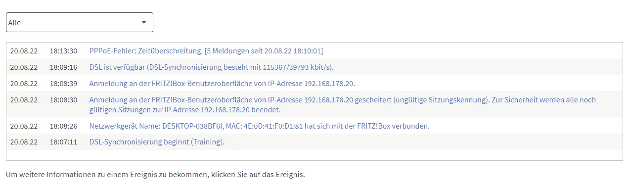 Bitte das Ereignisslog > Internetverbindung < mit hochladen.