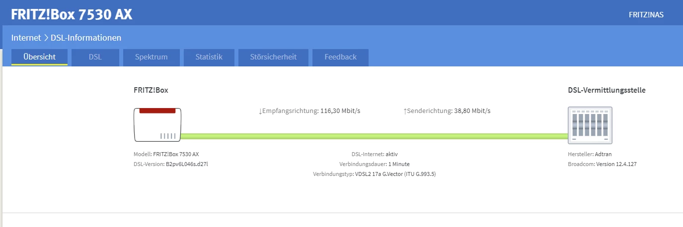 …..Die Fritzbox 7590 AX läuft an der Gegenstelle Adtran nicht….