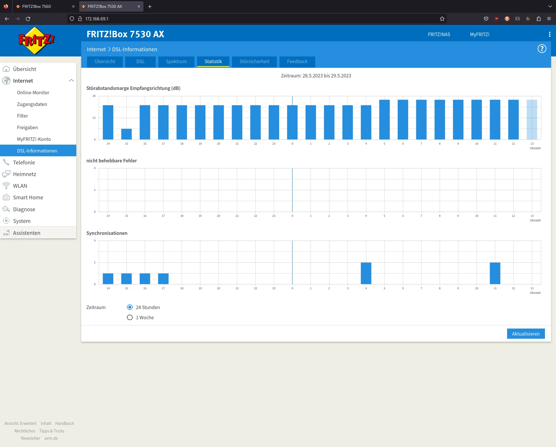 seit meinem Umzug vor 3 Wochen habe ich Probleme mit meinem DSL Anschluss. Das Problem ist folgendes: Die Internetverbindung bricht teilweise mehrmals täglich kurz ab. In meiner FritzBox 7530 AX wird mir unter den Ereignissen dann folgendes angezeigt:
