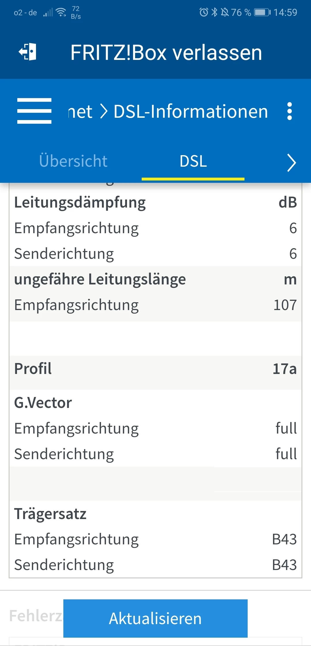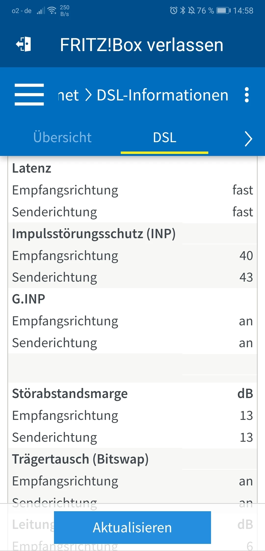 Anschließend poste bitte die DSL-Tabelle unter “Internet”-”DSL-Informationen”-”DSL”.
