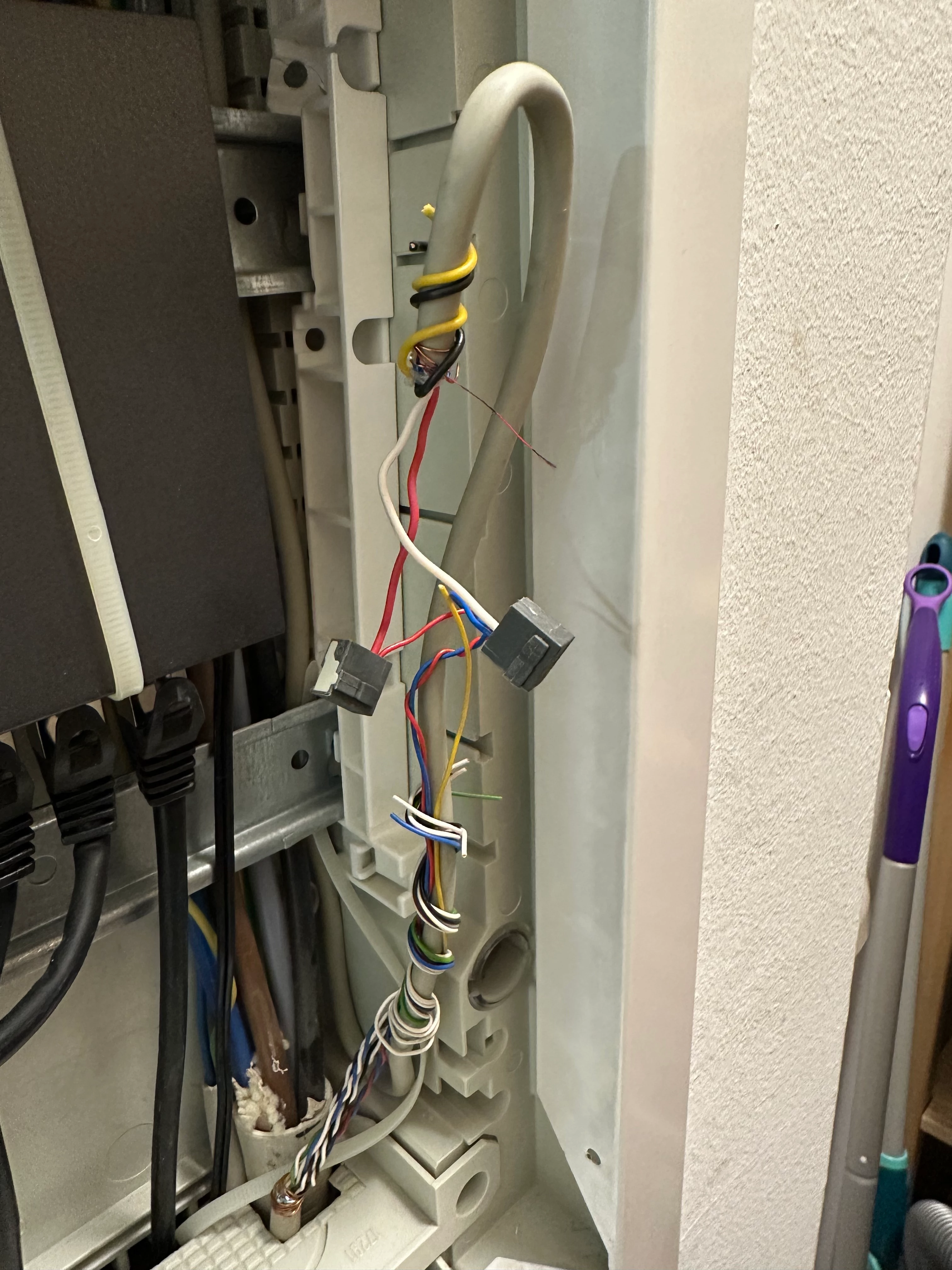 Da ist die TAE Dose angeklemmt (oben mit rot und weiß)