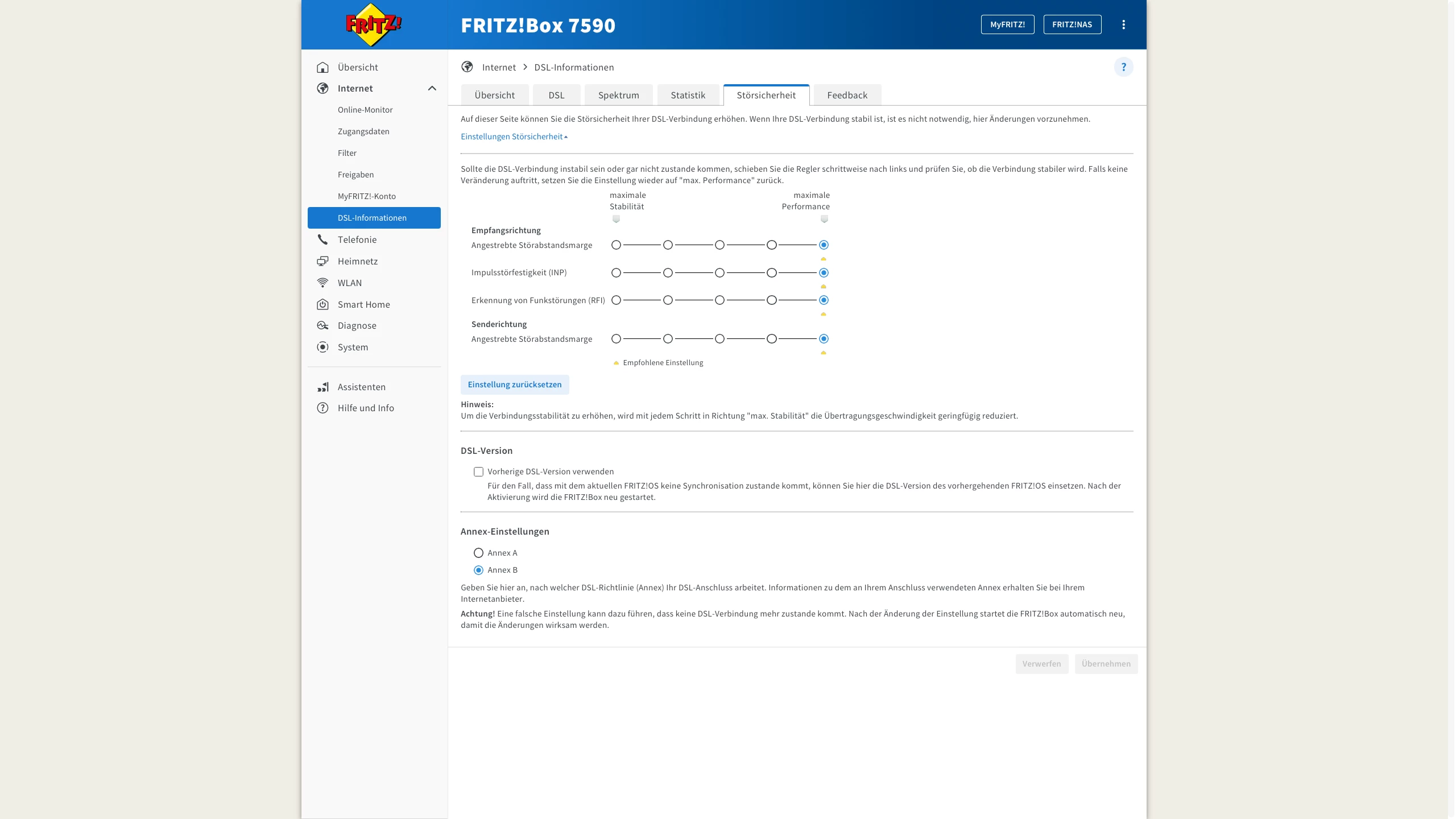 Die automatische Profiloptimierung ( ASSIA ) regelt bei Problemen oder Fehlern auf der Leitung die Bandbreite automatisch.