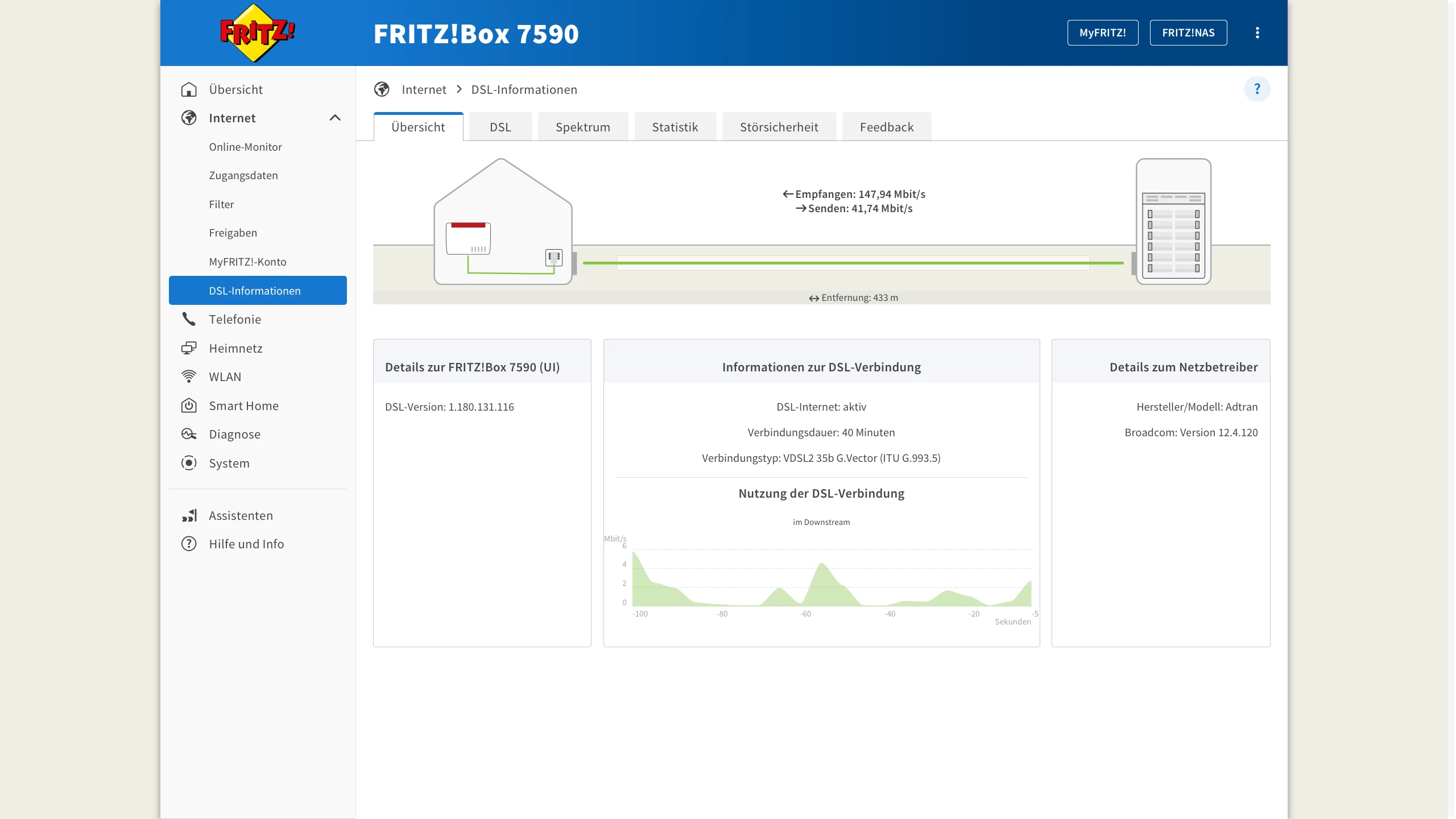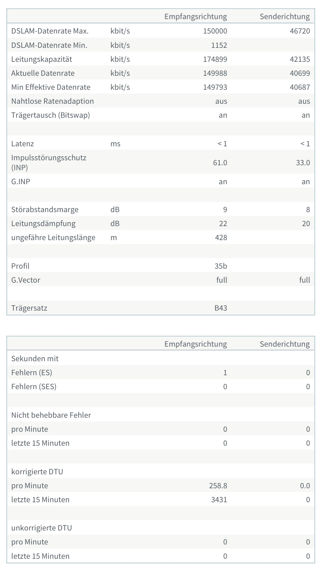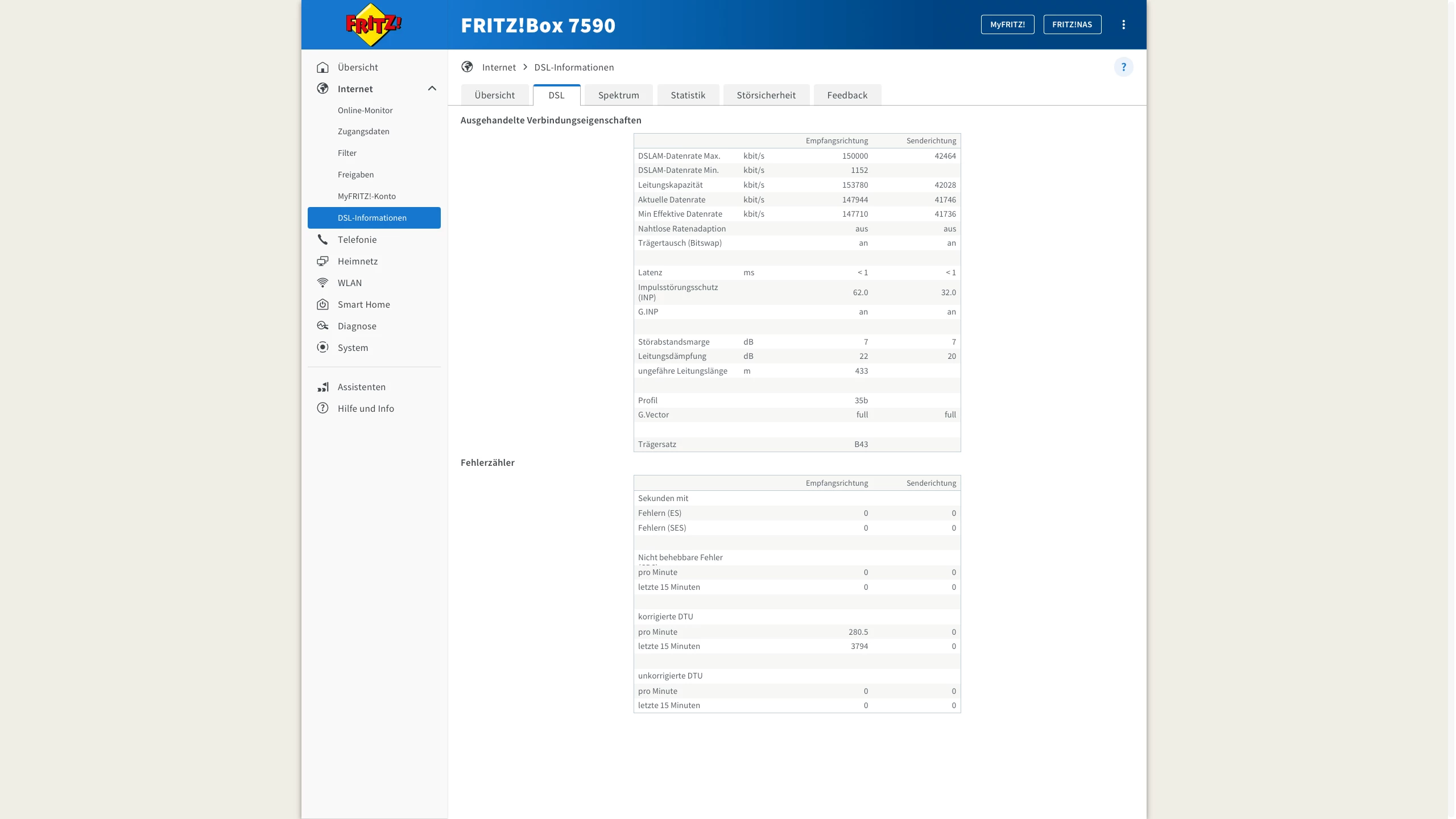 Leider wird mir in der Fritzbox bei Leitungskapazität ein Wert von ca. 148000 angezeigt mit einer Datenrate von etwas über 140000.