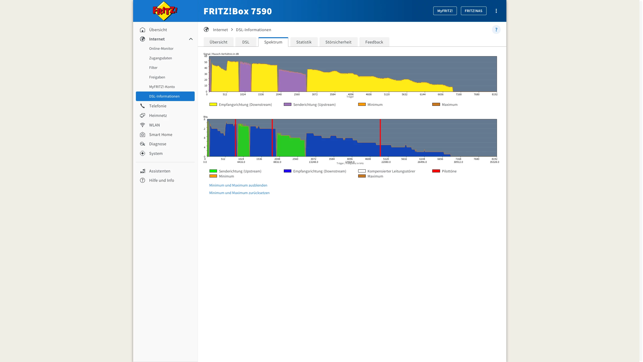 b) Beim Spektrum Tab bitte erst auf den Link "Maximum und Minimum anzeigen" klicken
