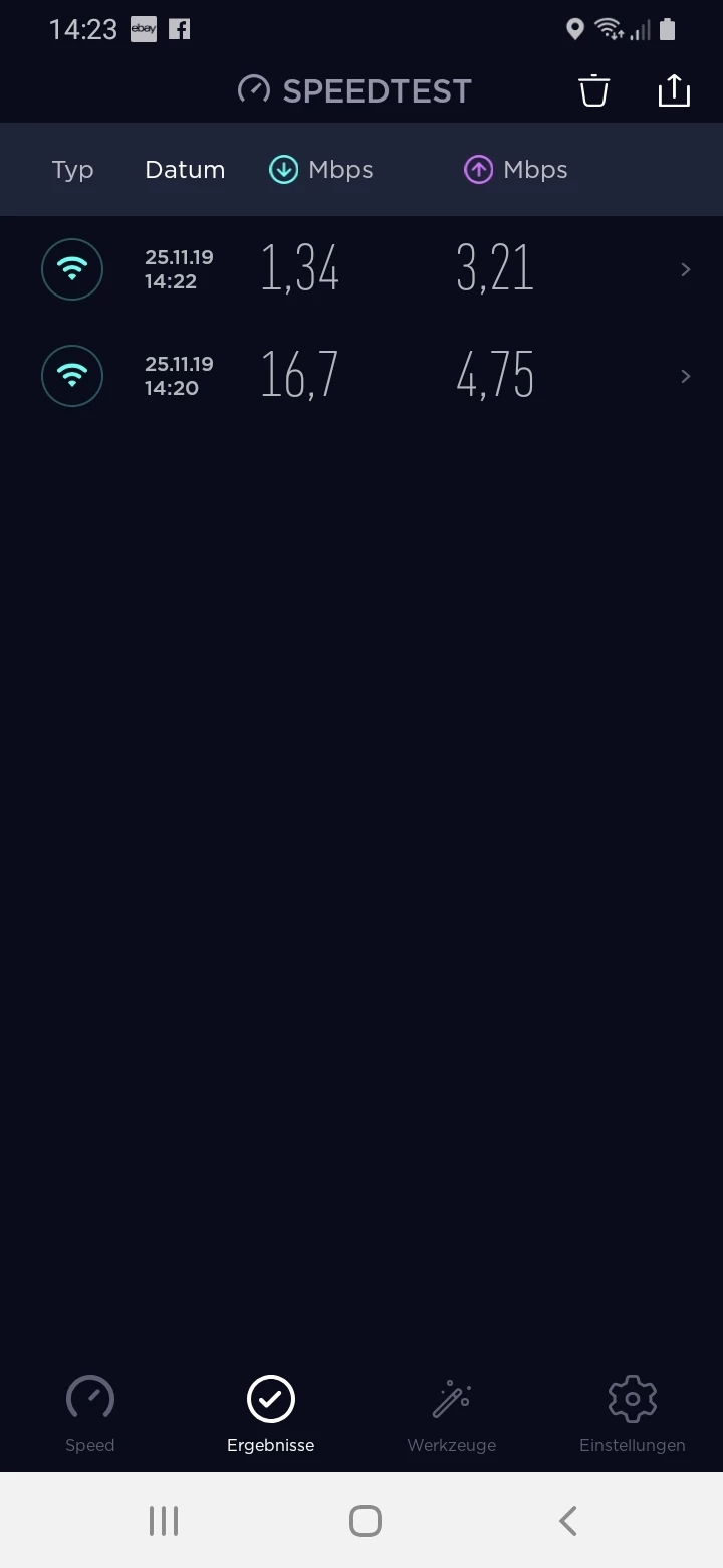 Das ist immer noch der gleiche Smartphone-Screenshot. Da Smartphones keinen LAN-Anschluss haben, misst du damit vor allem die Leistung deines WLANs. Ist völlig uninteressant, wenn es doch eigentlich um den o2 DSL-Anschluss geht.