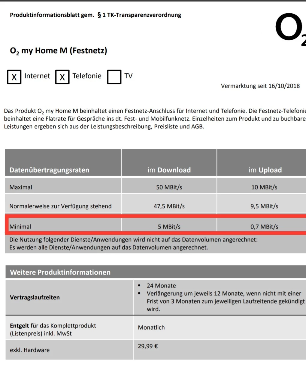 Ein Produktinformationsblatt zu einem 50k Tarif als Beispiel siehe Screenshot.