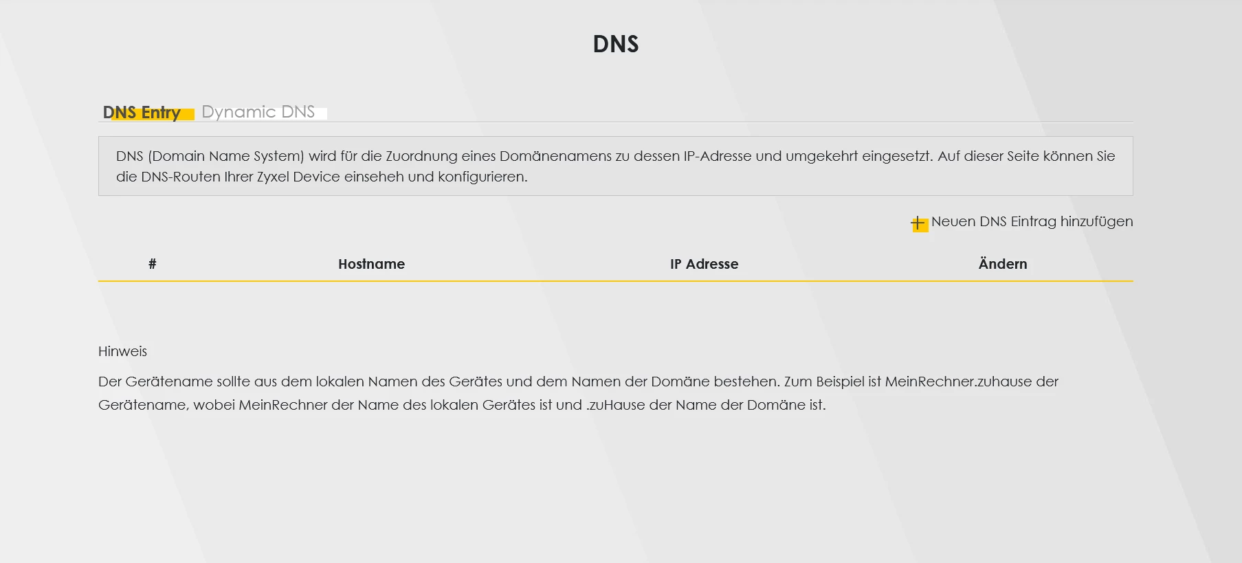 Bei DNS sind auch keine Einträge und “Dynamic DNS” ist deaktiviert.