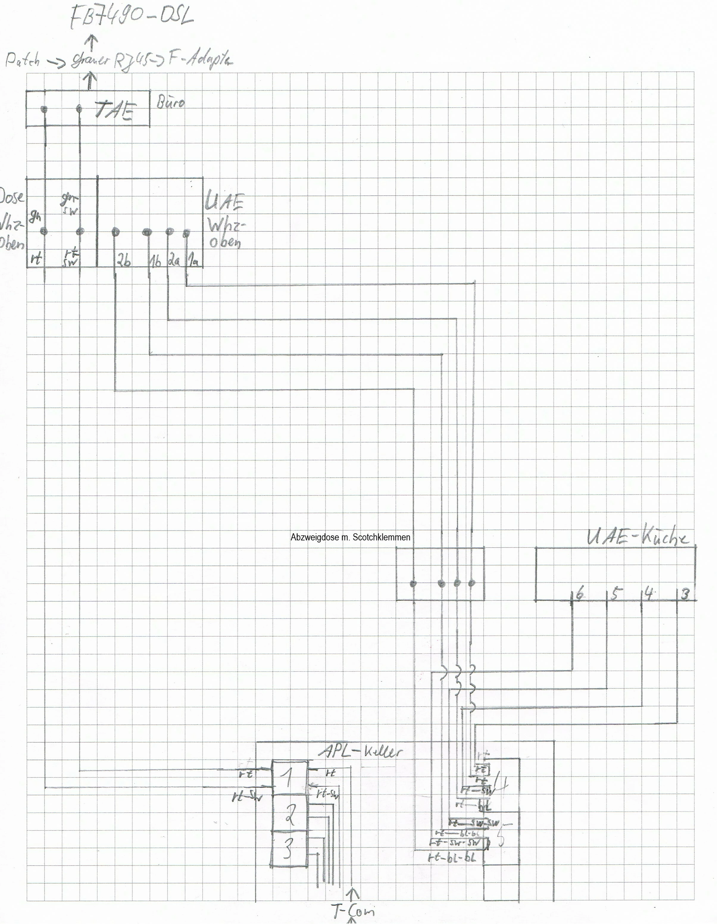 Die grünen Adern an der TAE stammen aus einem 6-Paarigem Kabel bei dem ich auch wieder nicht weiß wo es her kommt. Es gibt also noch viel zu tun, und das nur um ein paar Monat bis zum FTTH-Schaltung zu überbrücken...:confounded: