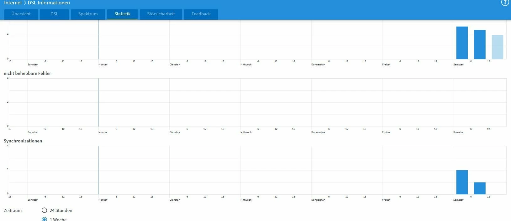 Die Seiten mit dem grünen Pfeil hochladen. Bei DSL auch die “unteren Werte”. Statistik auf Woche stellen.
