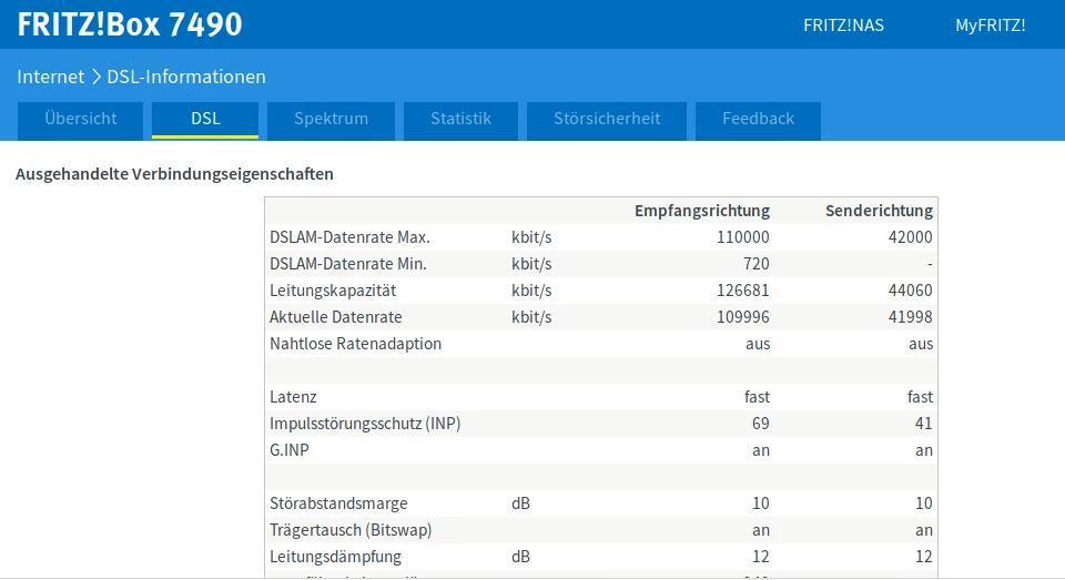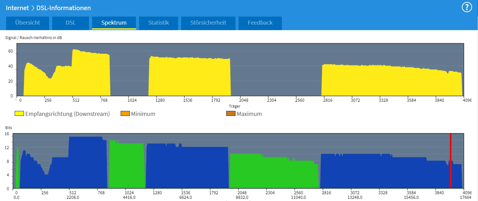 das Spektrum sieht in ordnung aus. Tausch der TAE wird wohl nicht viel bringen. Ich vermute mal, du hast nur eine Anschlussdose?