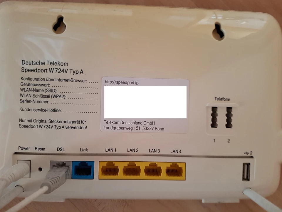Der Speedport ist nur mit einem Kabel (ca. 1.5m) an die TAE-Dose in der Wand angeschlossen, ohne Verlängerung oder andere Hardware, wie zum Beispiel einen Splitter, oder?