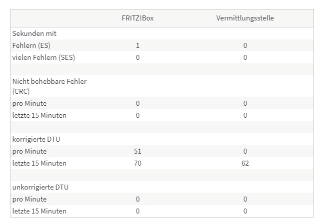 DTU Fehler gibt über Störungen deiner VDSL Auskunft. Je mehr Fehler desto schlechter die Performance bis hin zu Abbrüchen.