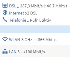 Die o2 my Service App sagt mir nur: “...alles optimal.”, dasselbe wie in der Fritz Box selbst, dass ich an die 300.000 MBit empfange. Nur effektiv kommt in keinem Speedtest nicht mal 100.000 an. Und jeder Download läuft nur mit 5-8 MB/s statt mit üblicherweise 25-30 MB/s.