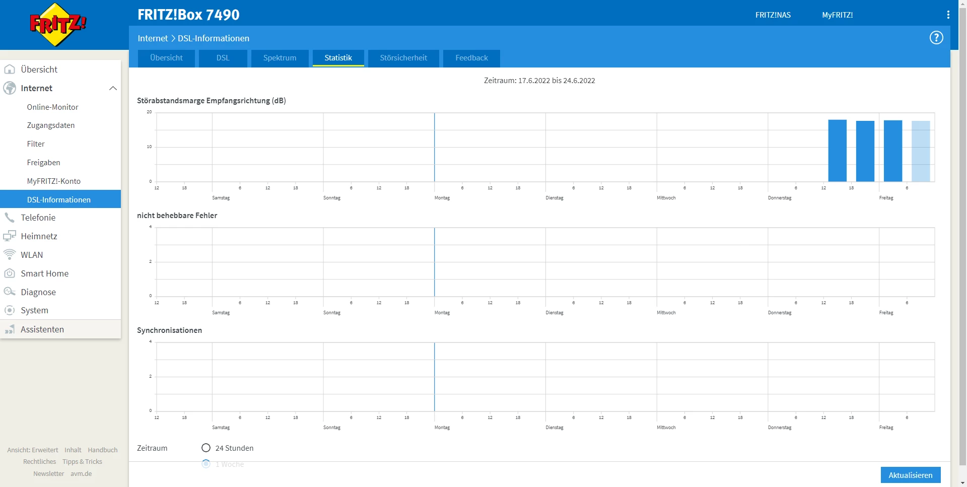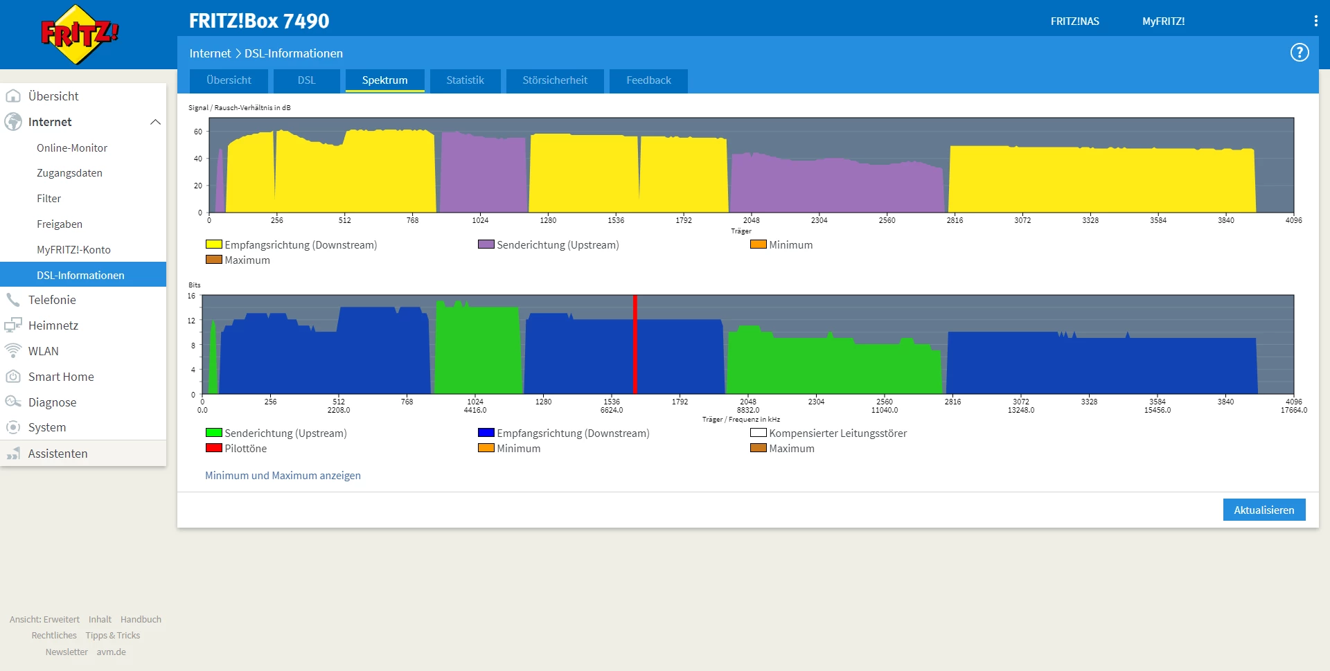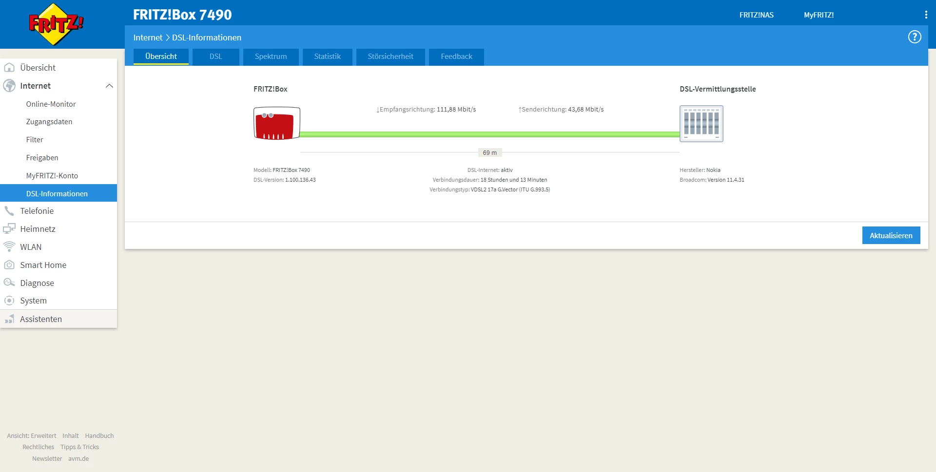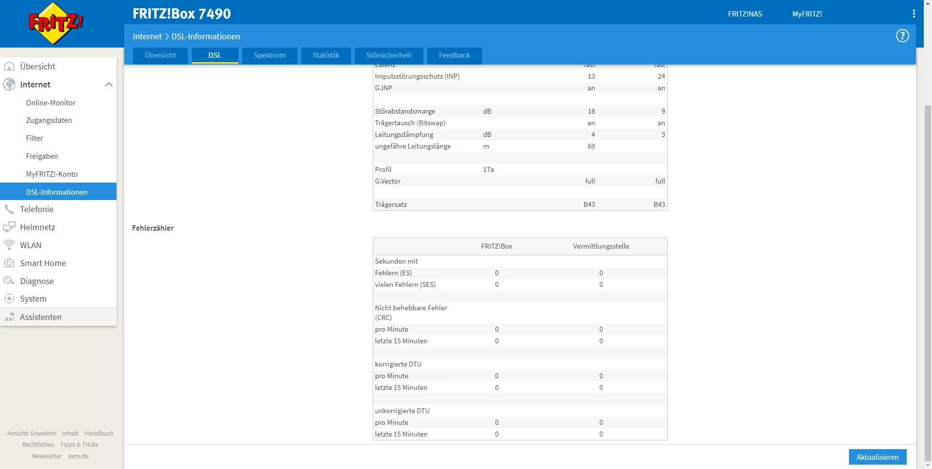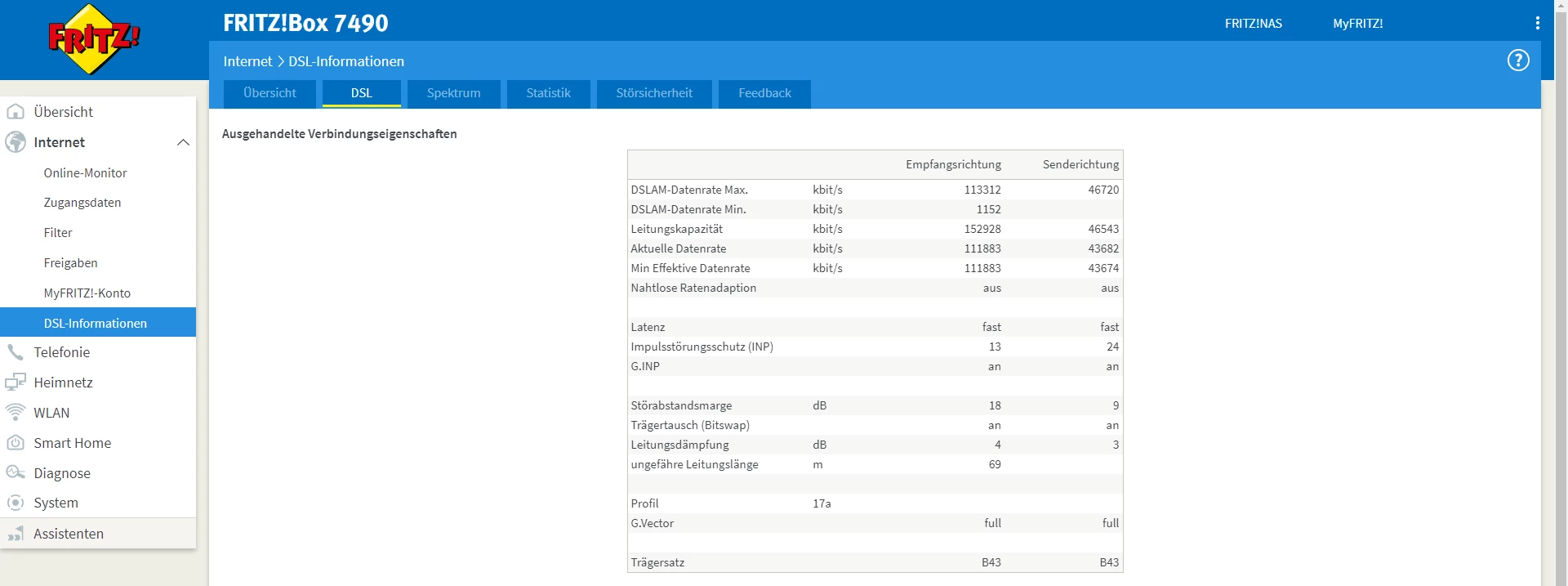 Wenn Du dort Werte von ca. 56,6 (Down) und 11,4 (Up) hast, dann kennen wir dein Problem.