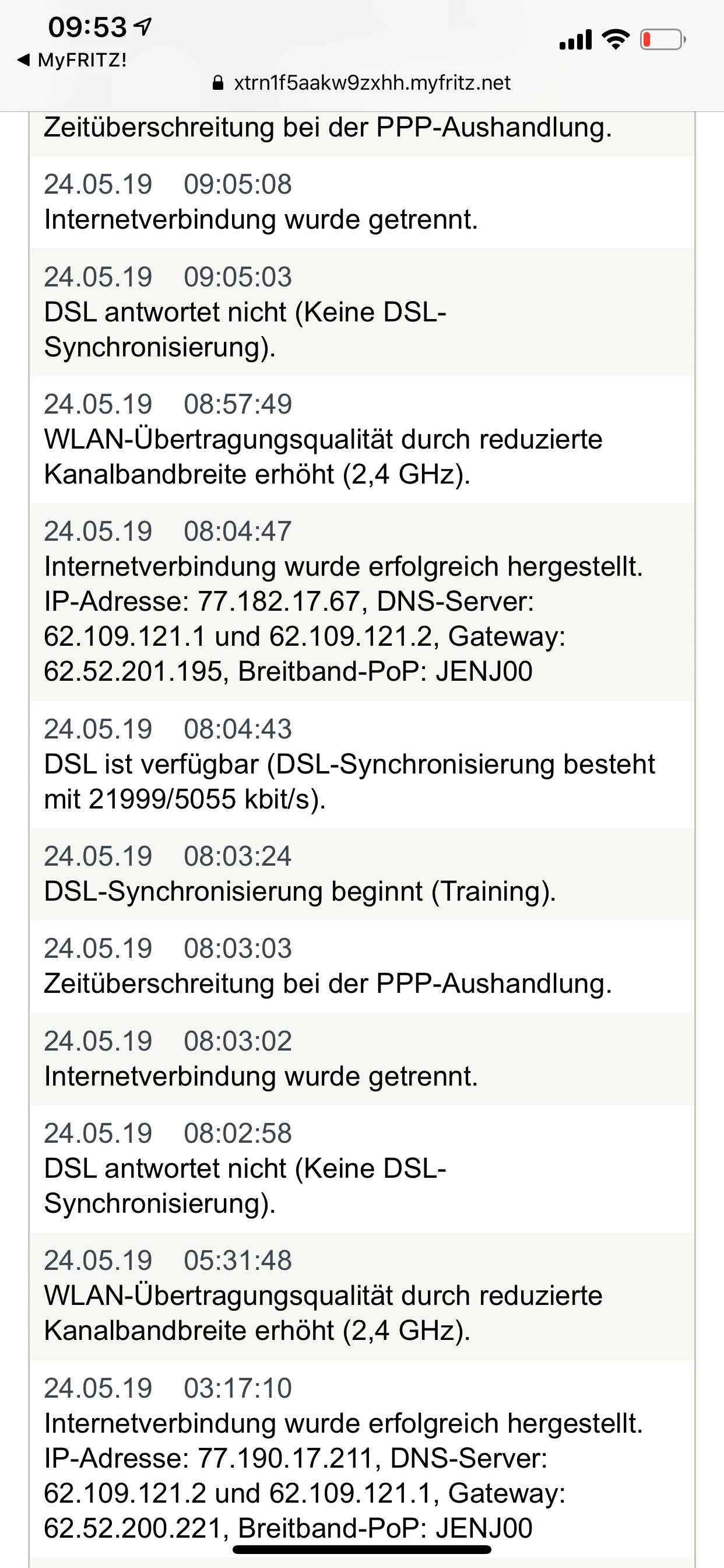 Aber ich weiß gerade nicht wo in der Fritzbox ich die Historie der Abbrüche finde. An für sich läuft es stabil.