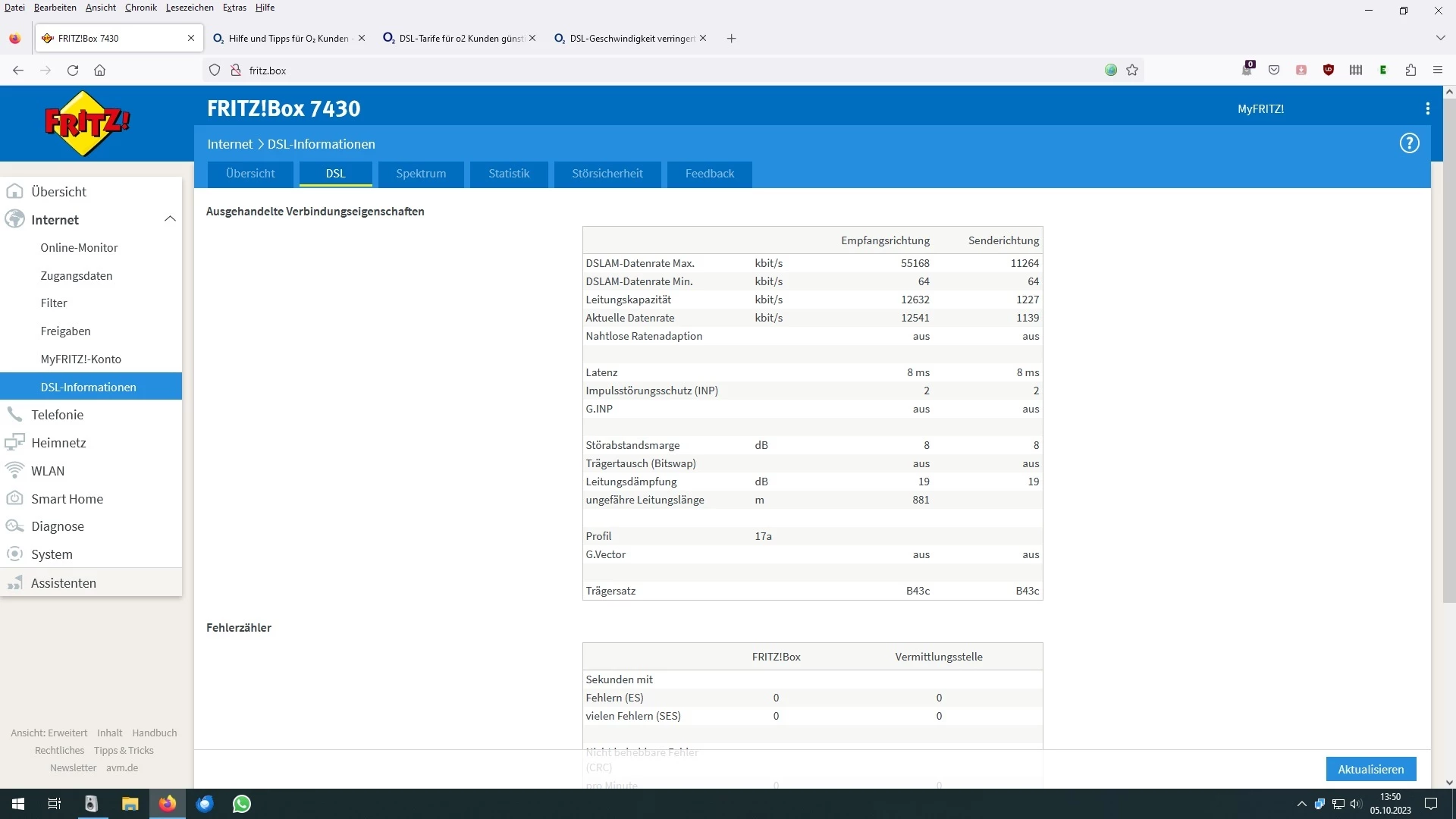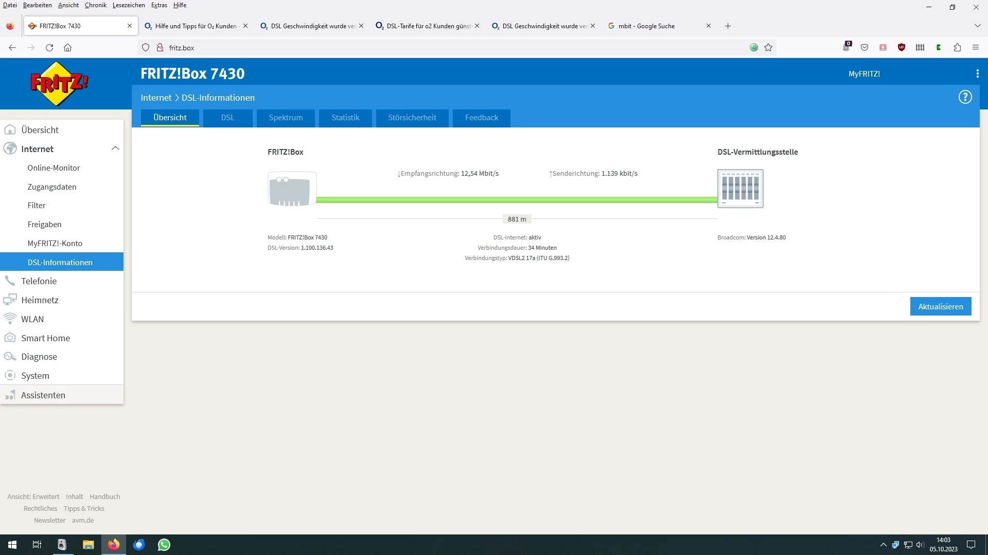 Bei der Überprüfung der Verbindungsdaten habe ich festgestellt, dass die Angabe bei ungefähre Leitungslänge 881 Meter beträgt - bisher waren das immer 230 Meter.