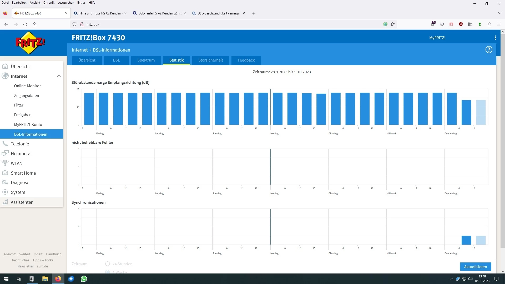 das Problem ist mittlerweile gelöst. Der verantwortliche Defekt lag in der Technik der EWE, dem Dienstleister von O2 hier im Norden, nicht an der Technik der Telekom. War tatsächlich auch nur ein Problem bei meinem Anschluss, die Nachbarschaft war nicht betroffen.