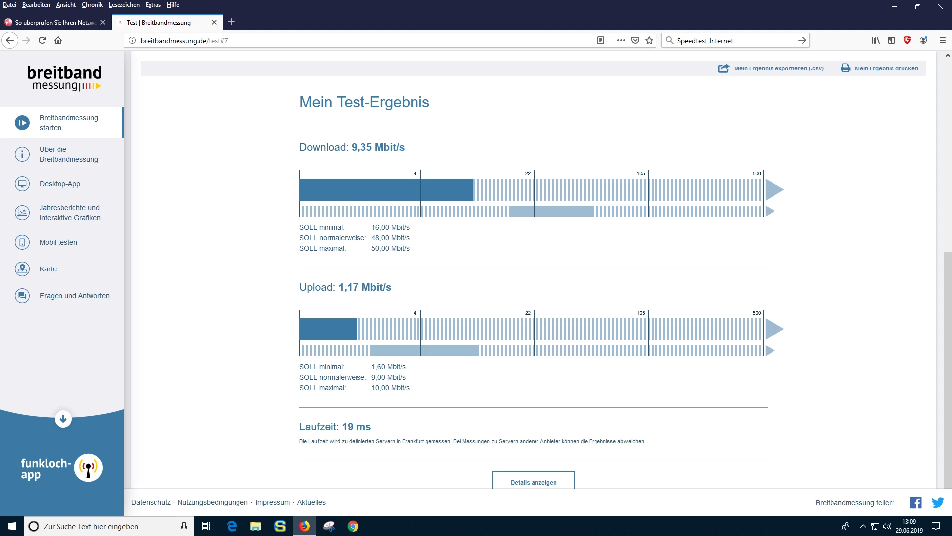 ich möchte noch hinzufügen das ich bis Juni 2019 eine korrekte Geschwindigkeit von 50 MB/s hatte ?