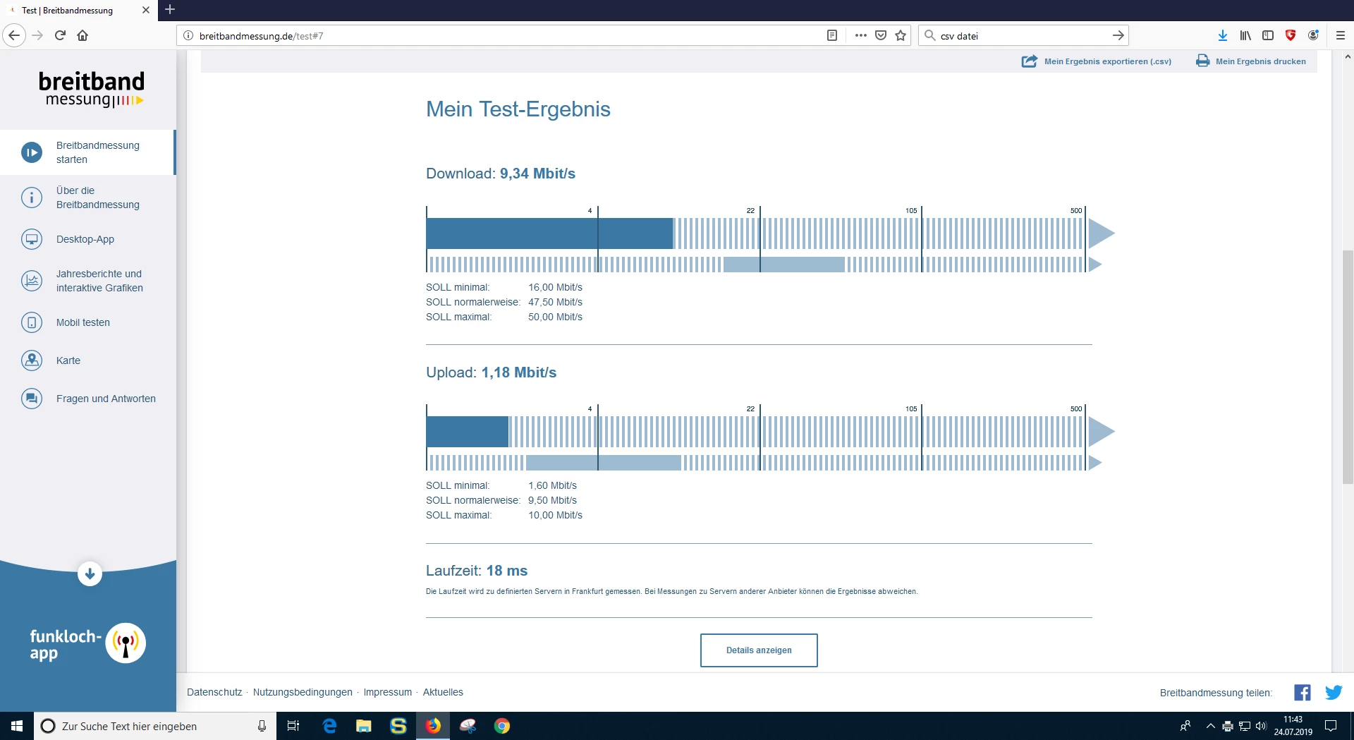 DSL Geschwindigkeit von 50 MB/s auf 9 MB/s download in der Regel nur 1,1 MB/s