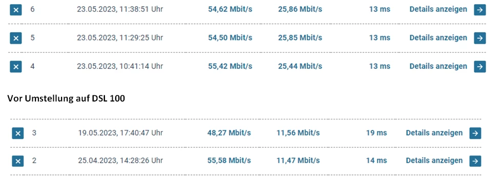 Ab 23.5.2023 sollte die höhere DSL-Geschwindigkeit bereitgestellt werden. Dies war und ist nicht der Fall (siehe Tool Breitbandmessung). Router: Fritzbox 7490