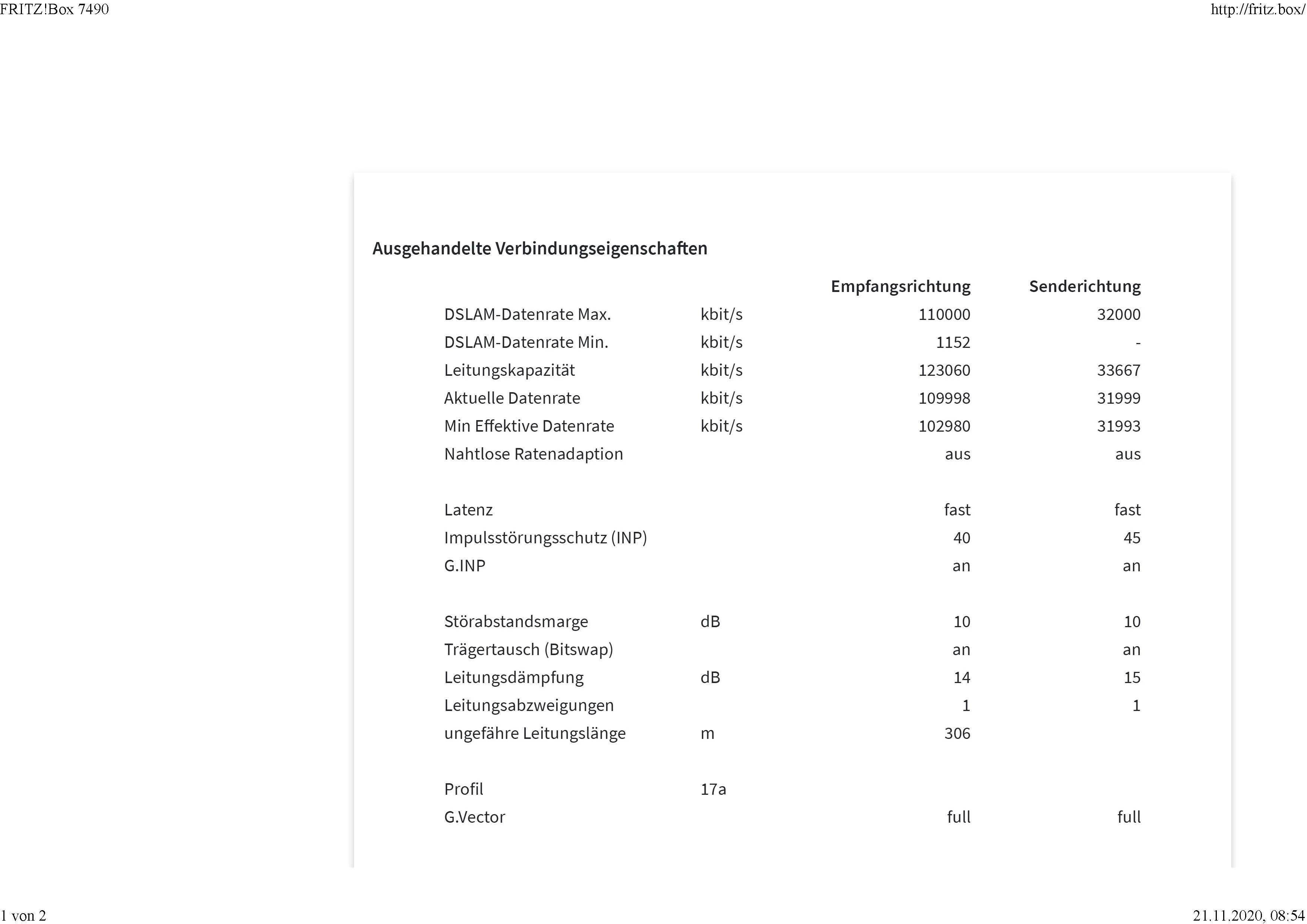 Poste bitte einen Screenshot der DSL-Tabelle unter “DSL” mit allen Leitungsparametern.