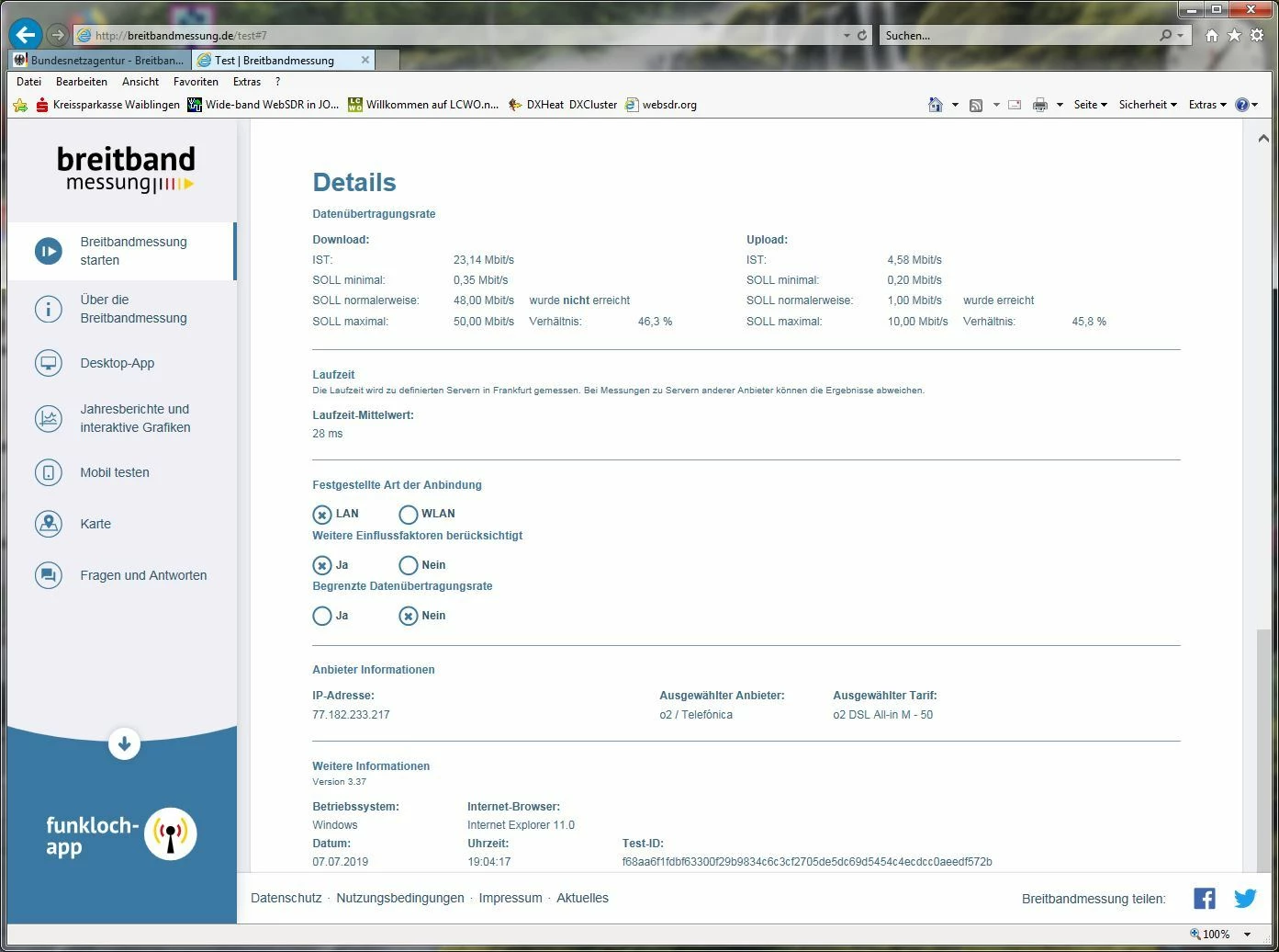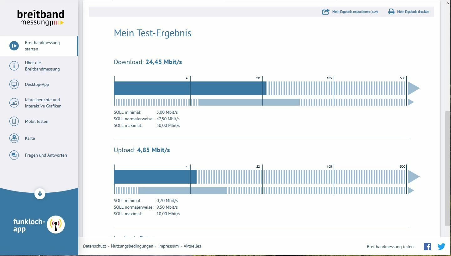 Allerdings ist hat sichj an der gemessenen Verbindung laut Breitbandmessung der BNetzA nichts wesentliches geändert: Immer noch 25/5