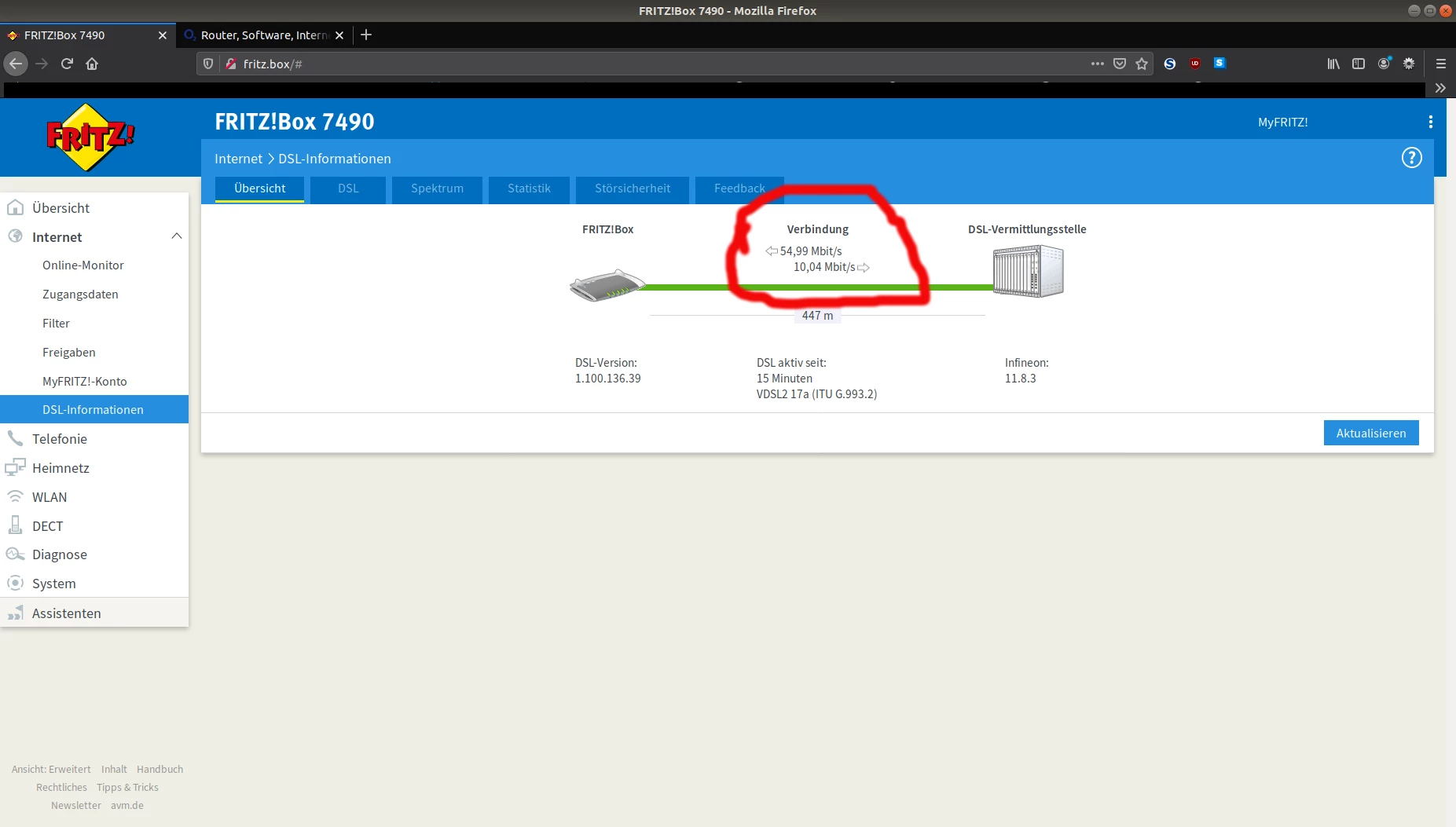 DSL-Geschwindikeit hoch (55Mbit), aber Download niedrig(27Mbit)