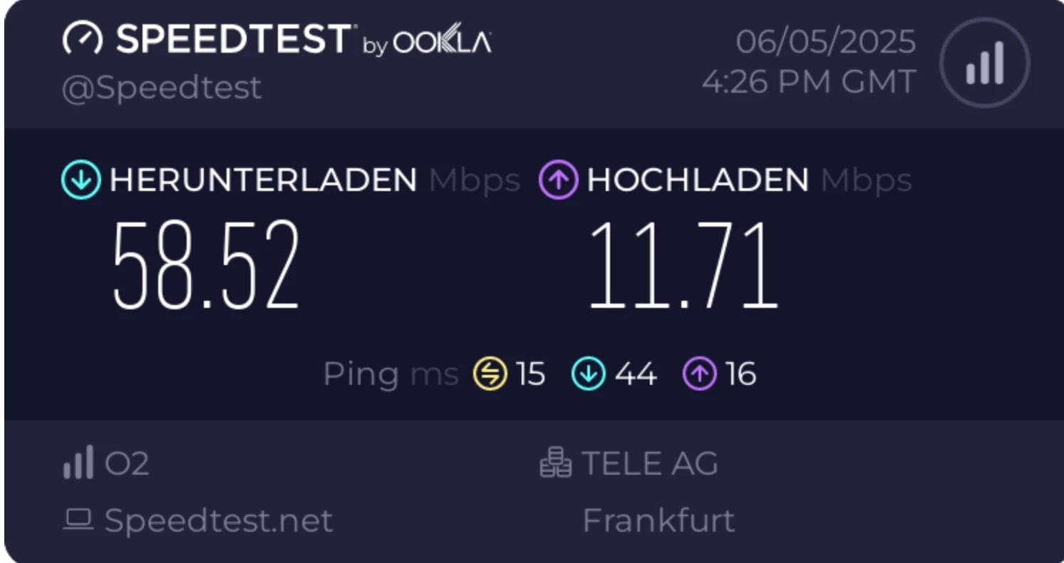 @VierTropfen Das ist definitiv noch das alte 50/10 Mbit Profil mit dem bekannten Overhead geschaltet. Ich kenne die Werte, da ich zu Hause auch nur einen 50 Mbit Tarif habe.