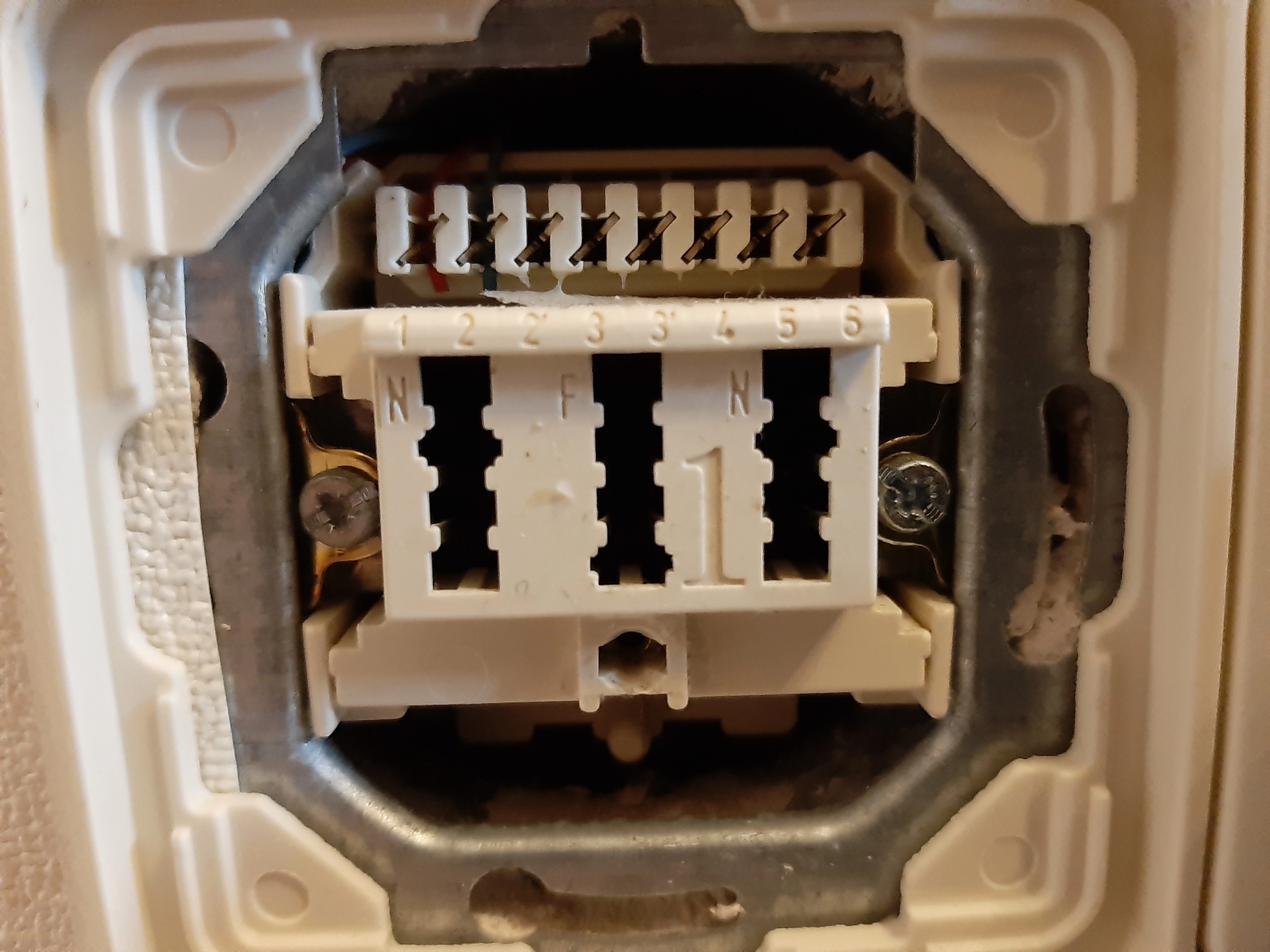 Über den Elektriker möchte ich mich besser nicht auslassen, der müsste eigentlich eine korrekte Verkabelung kennen. Und wenn Parallelschaltung, dann klatscht man das zweite Adernpaar nicht auf das erste, sondern auf Stift 1’ und Stift 2’, dafür sind die da. Stifte 5 und 6 führen zu einer Reihenschaltung.