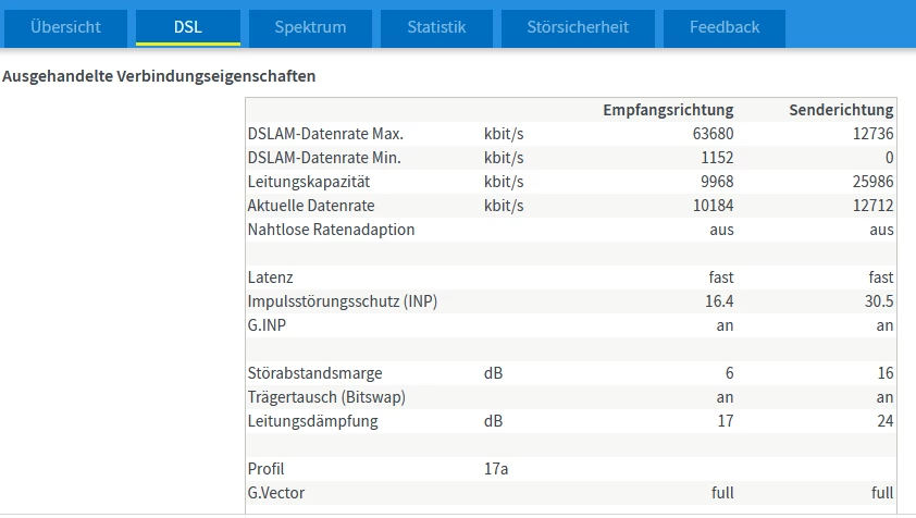 Was die nicht behebbaren Fehler angeht, zum Vergleich mal ein kurzer Blick auf meinen Anschluss:
